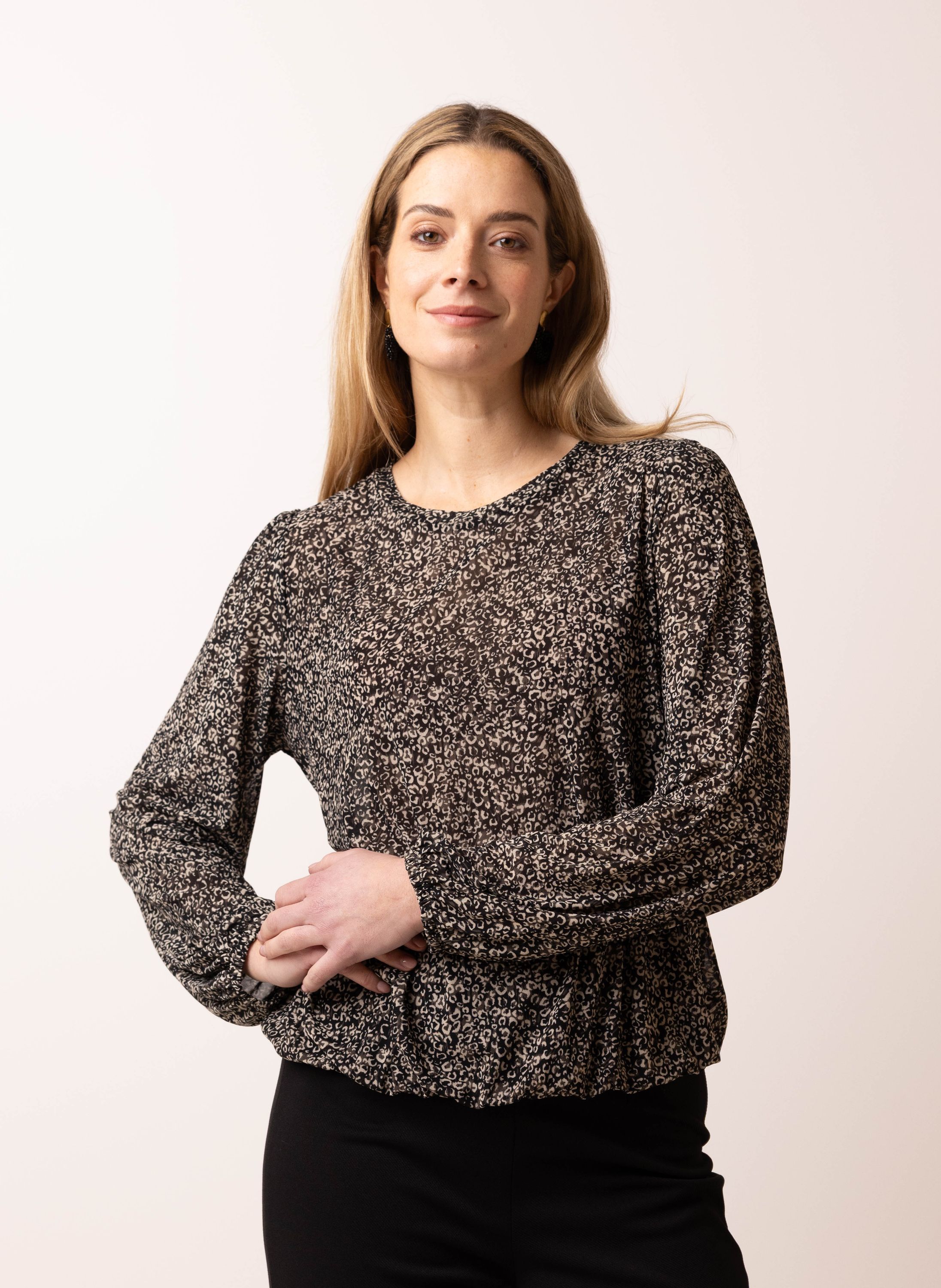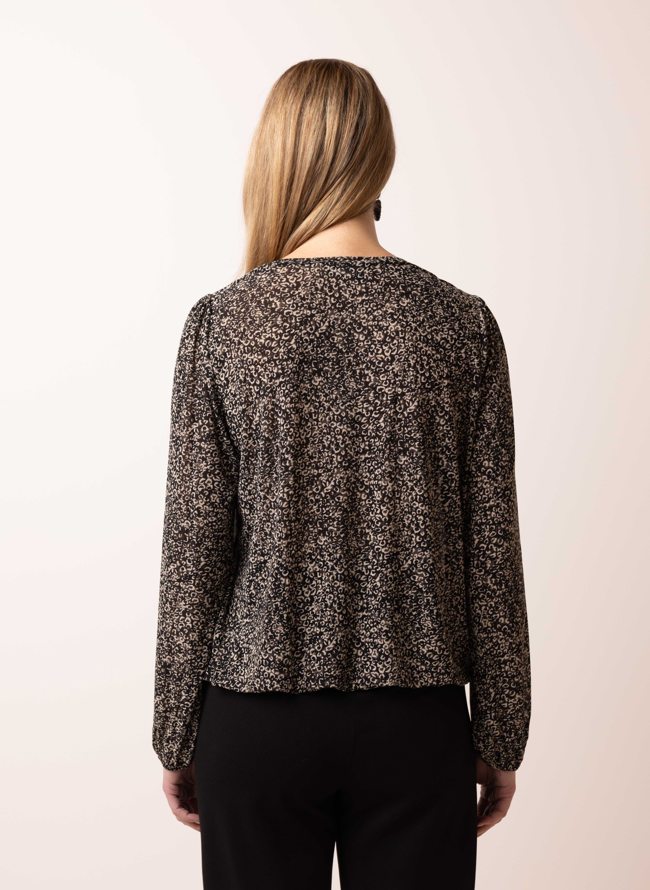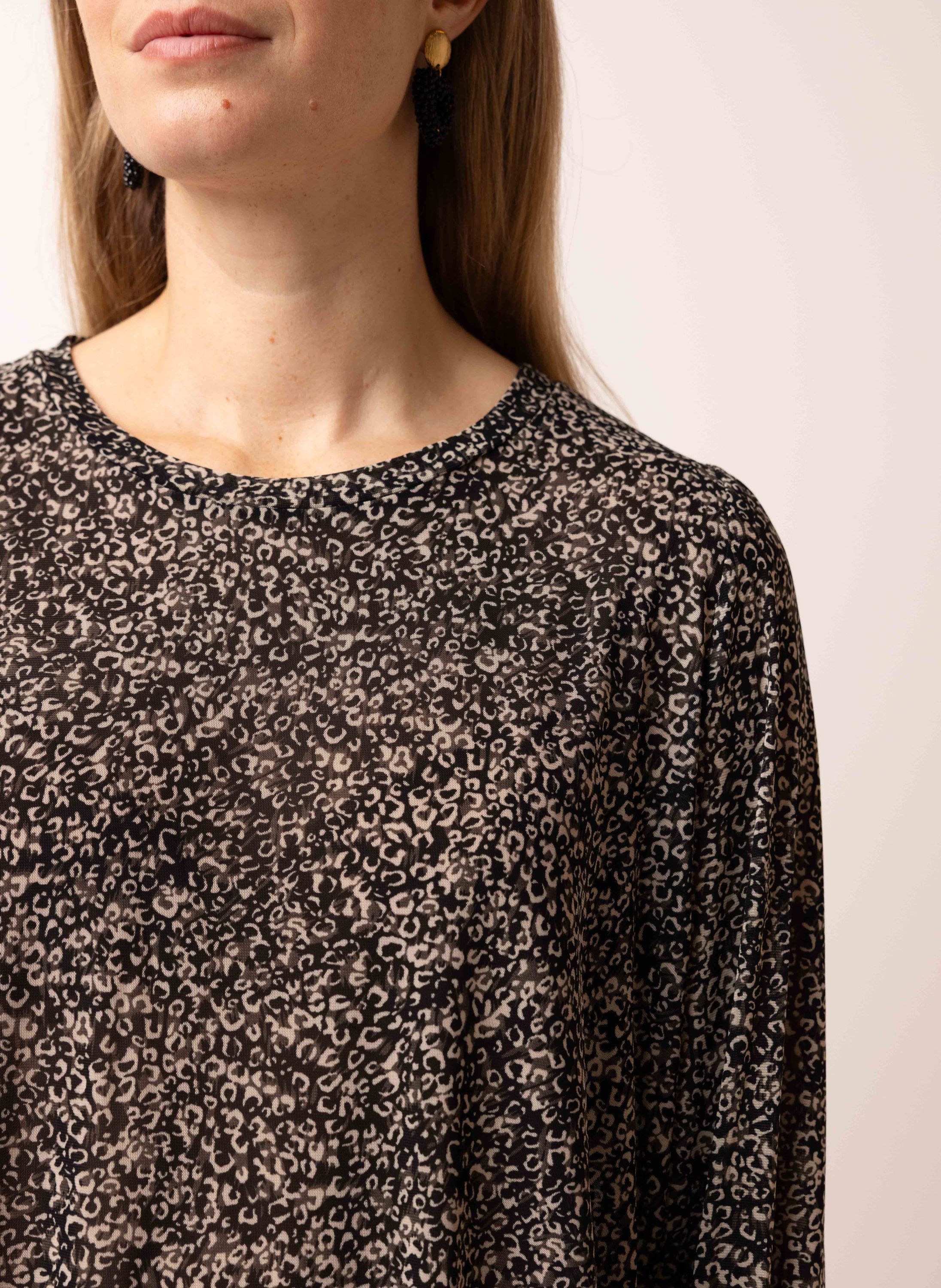 Zwart mesh shirt met panterprint
