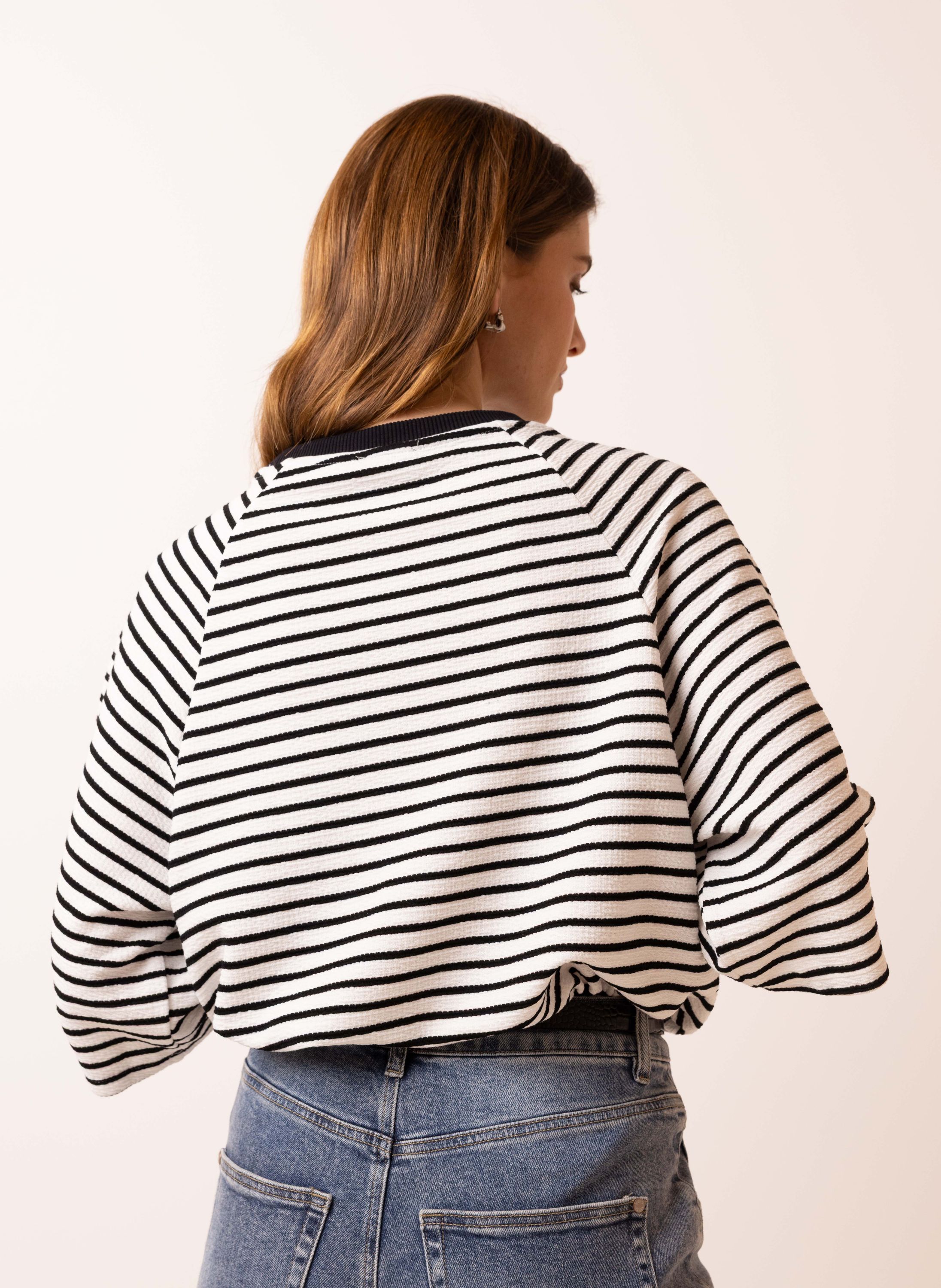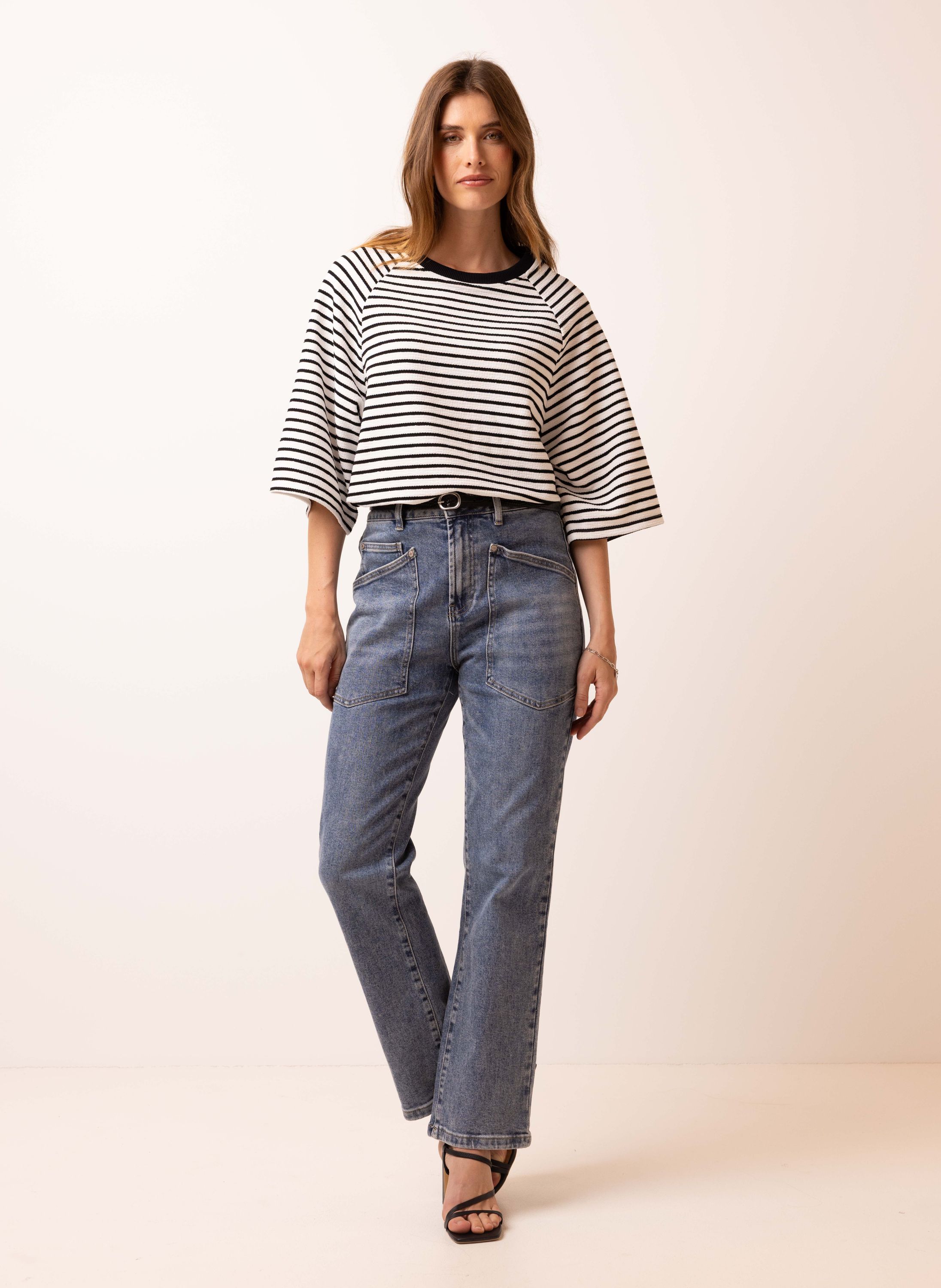 Deze trui heeft een ronde hals en halflange mouwen. Het model van dit shirt valt iets ruimer.
