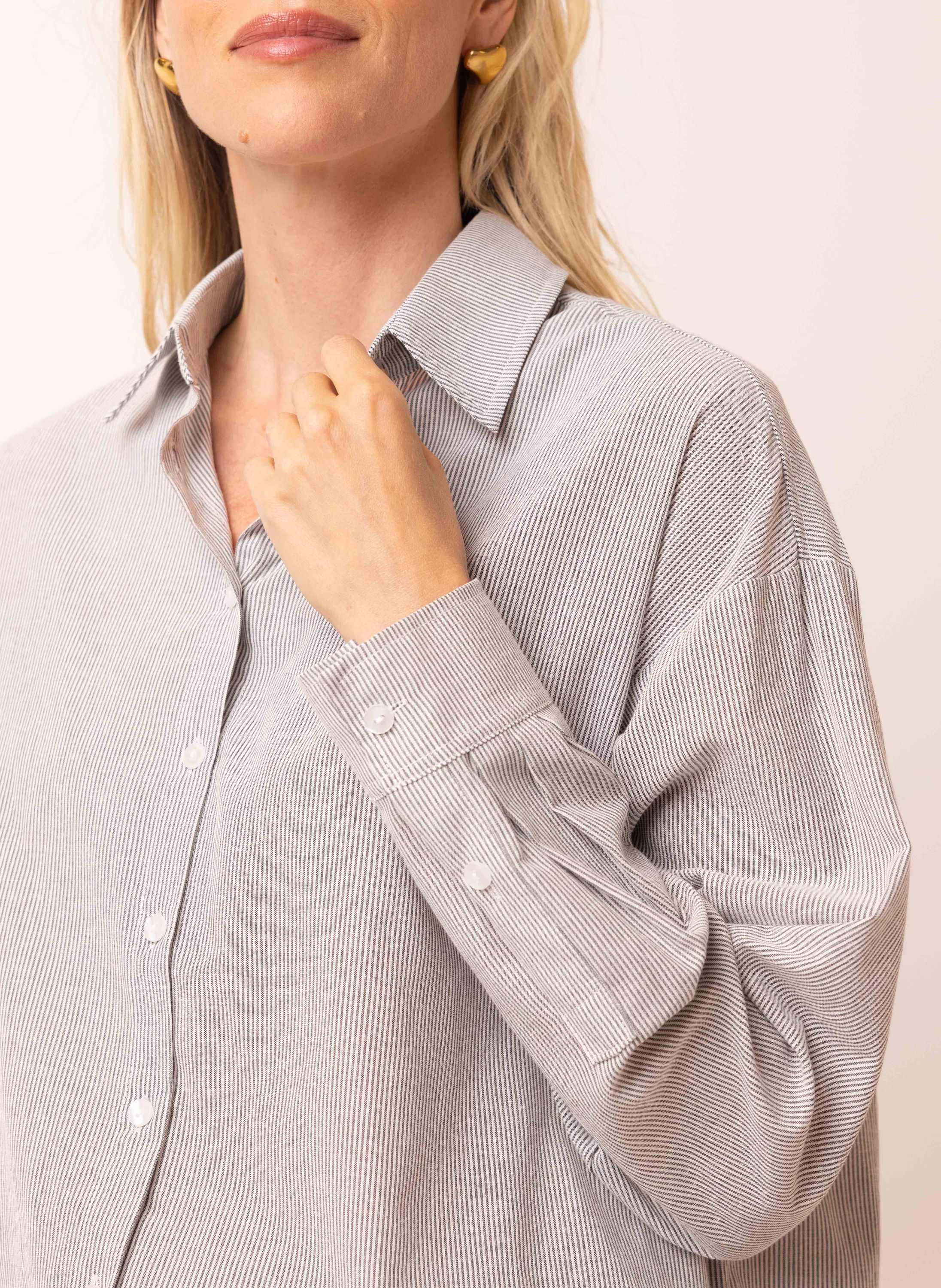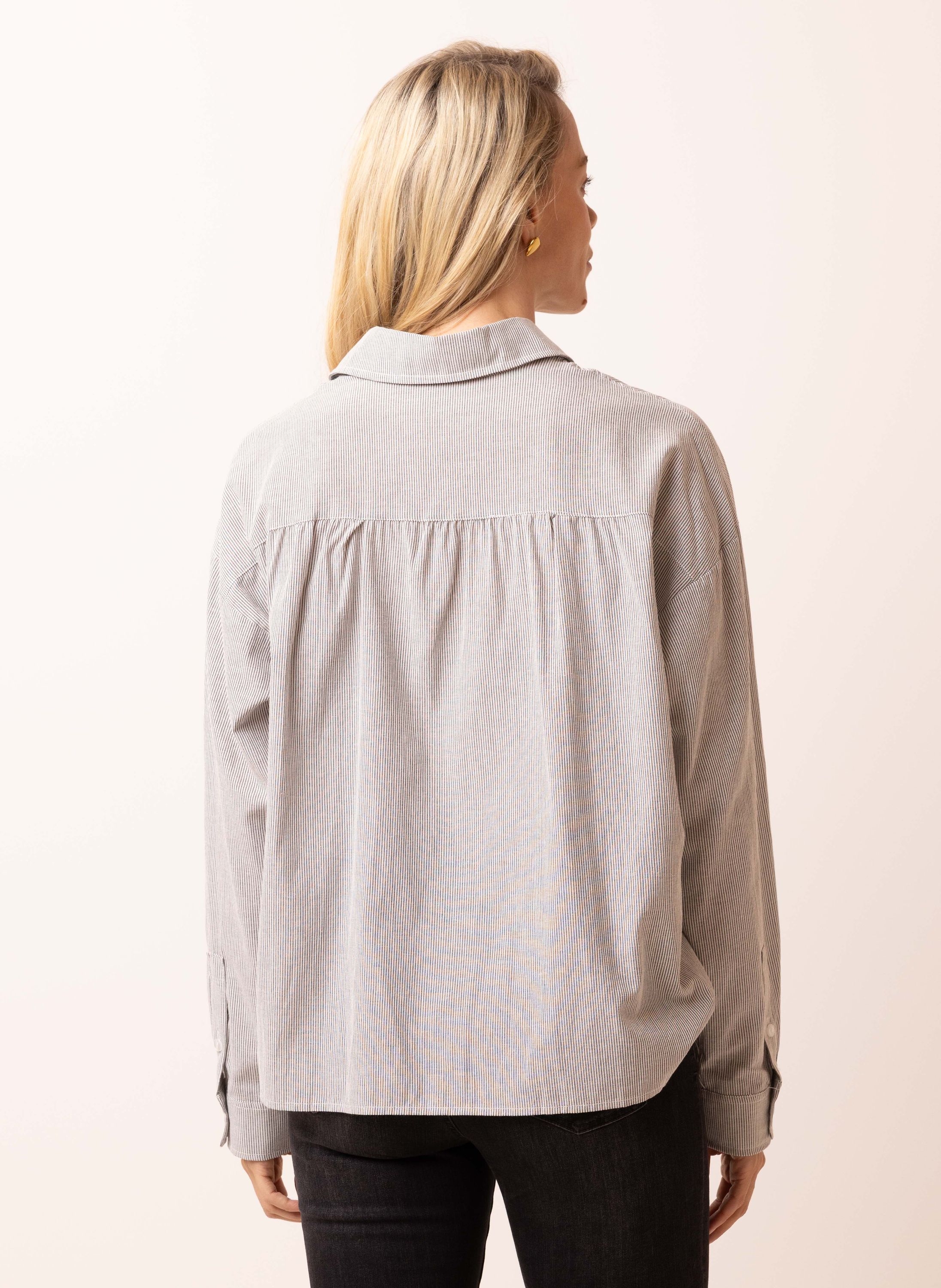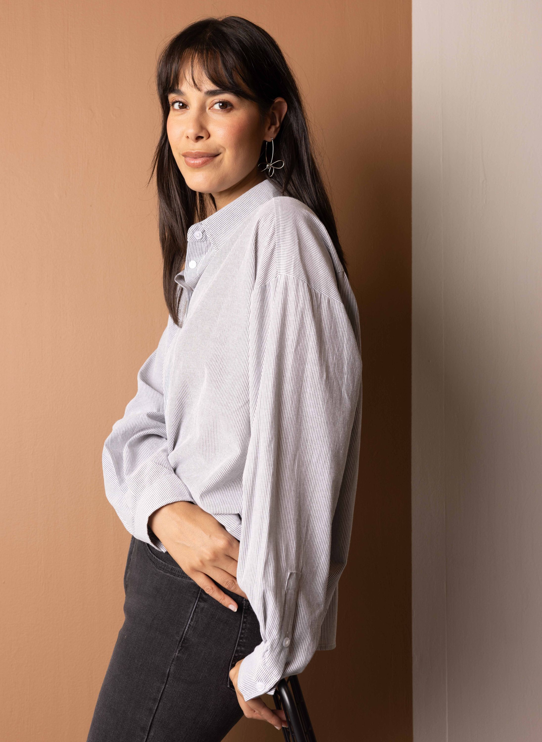 Deze blouse met klassieke kraag, knoopsluiting, lange mouwen en plooirand op de achterzijde is exclusief verkrijgbaar in geselecteerde winkels en online. Controleer de winkelvoorraad om de beschikbaarheid in een winkel bij jou in de buurt te bekijken.