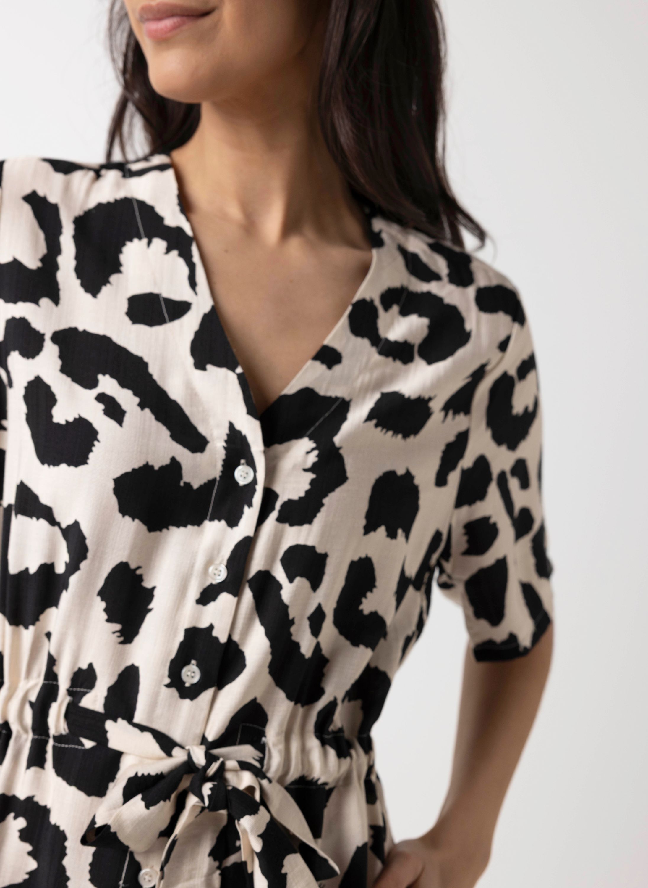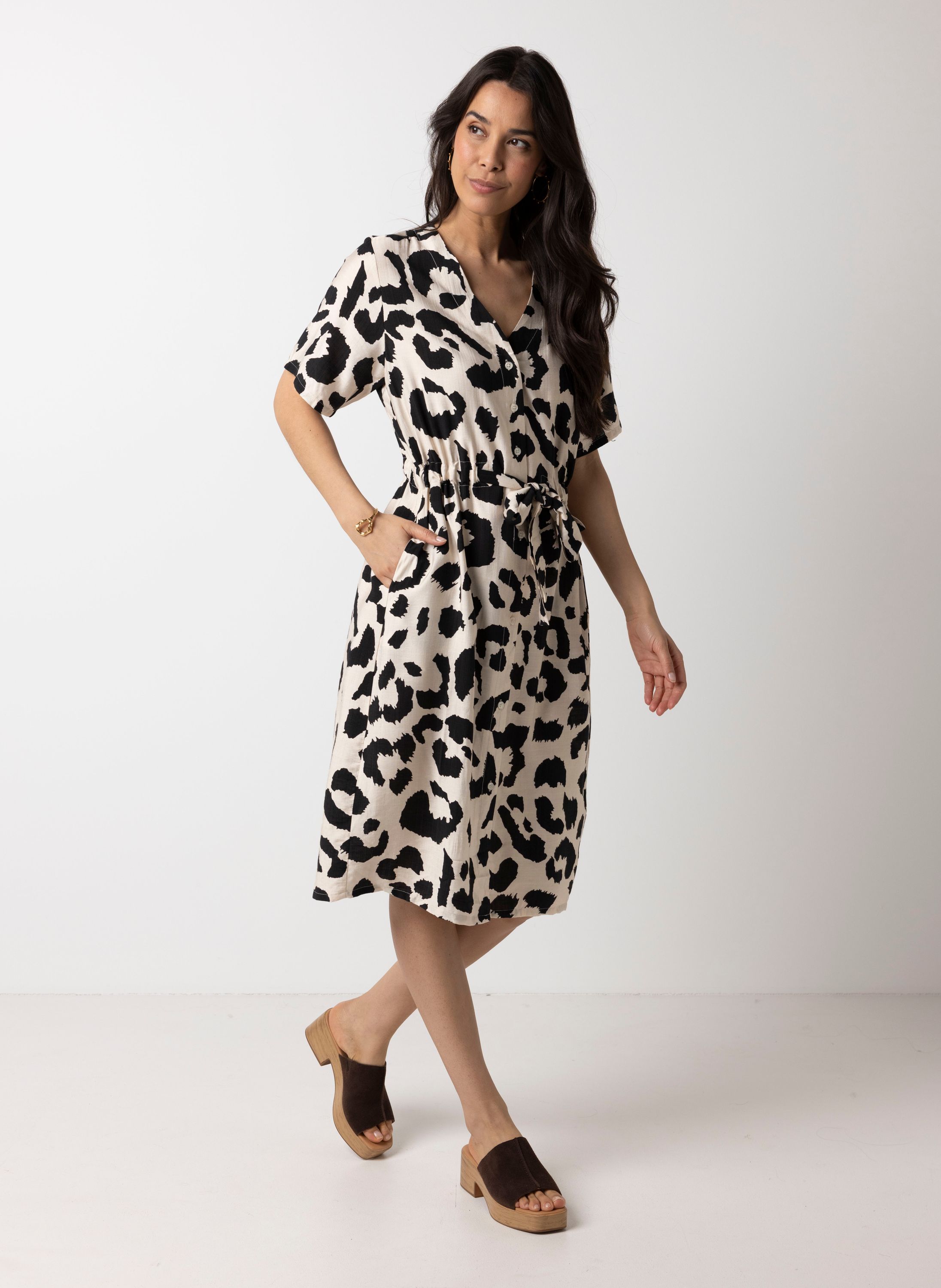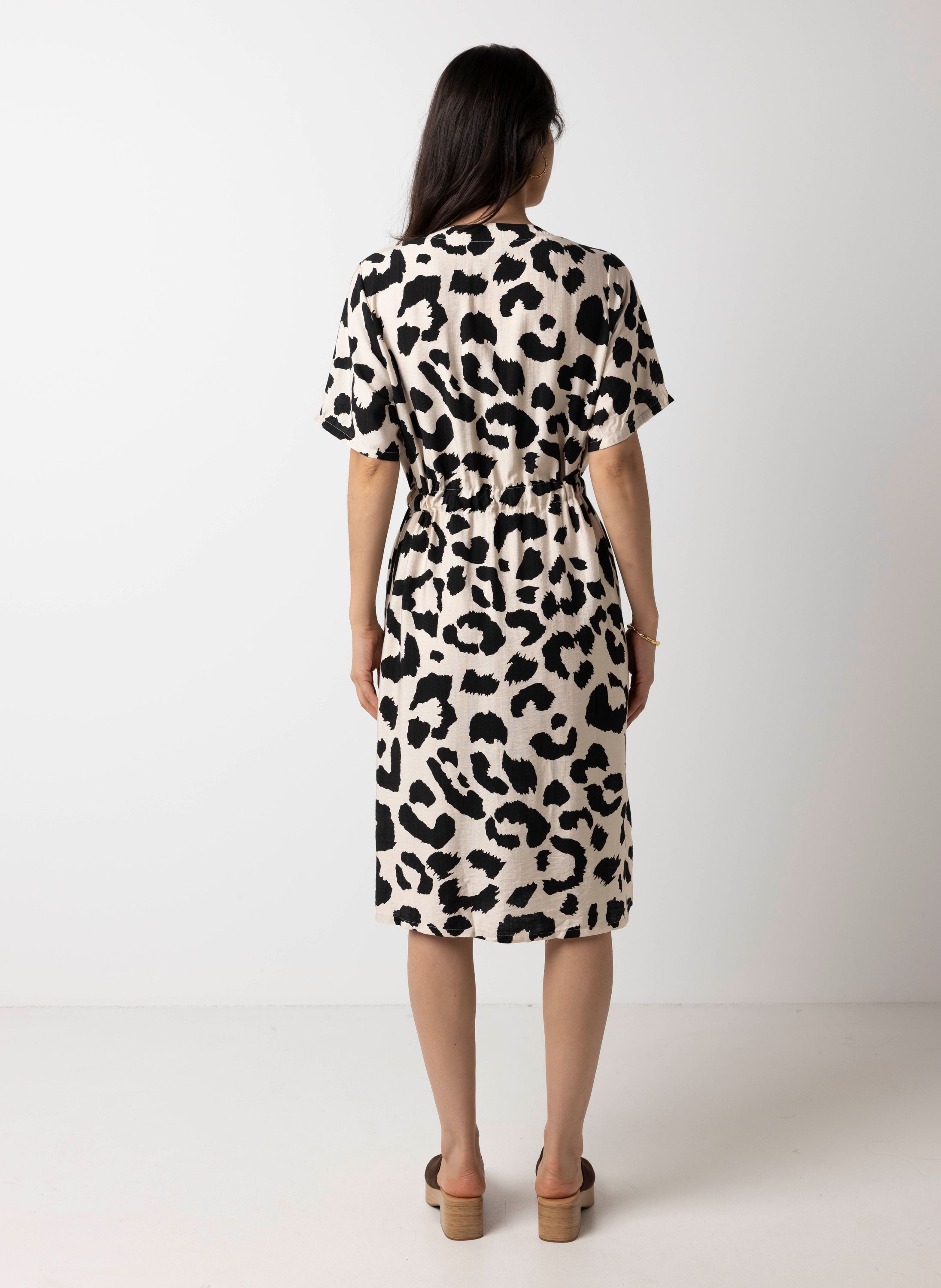 Zwart/witte midi jurk met dierenprint
