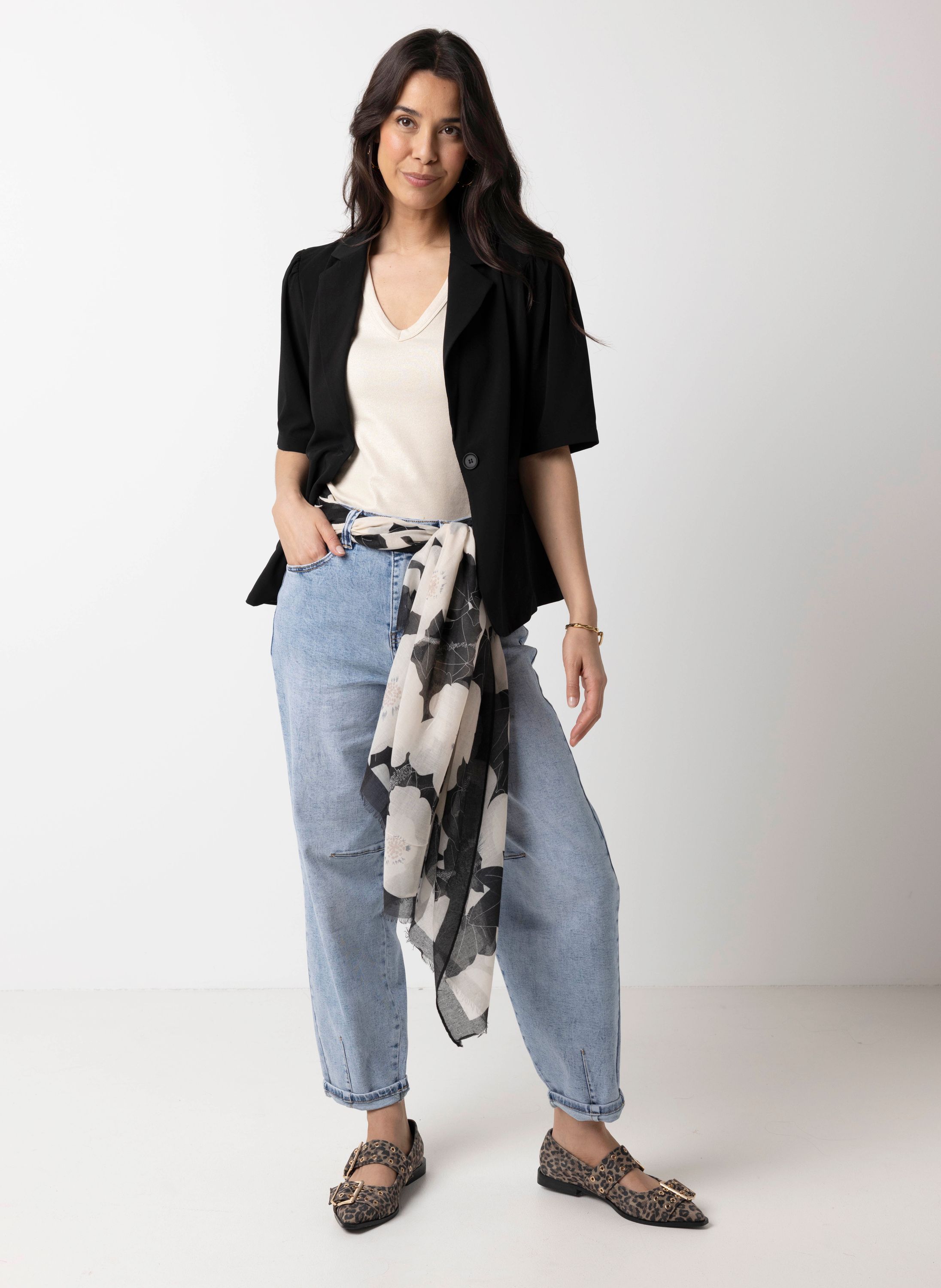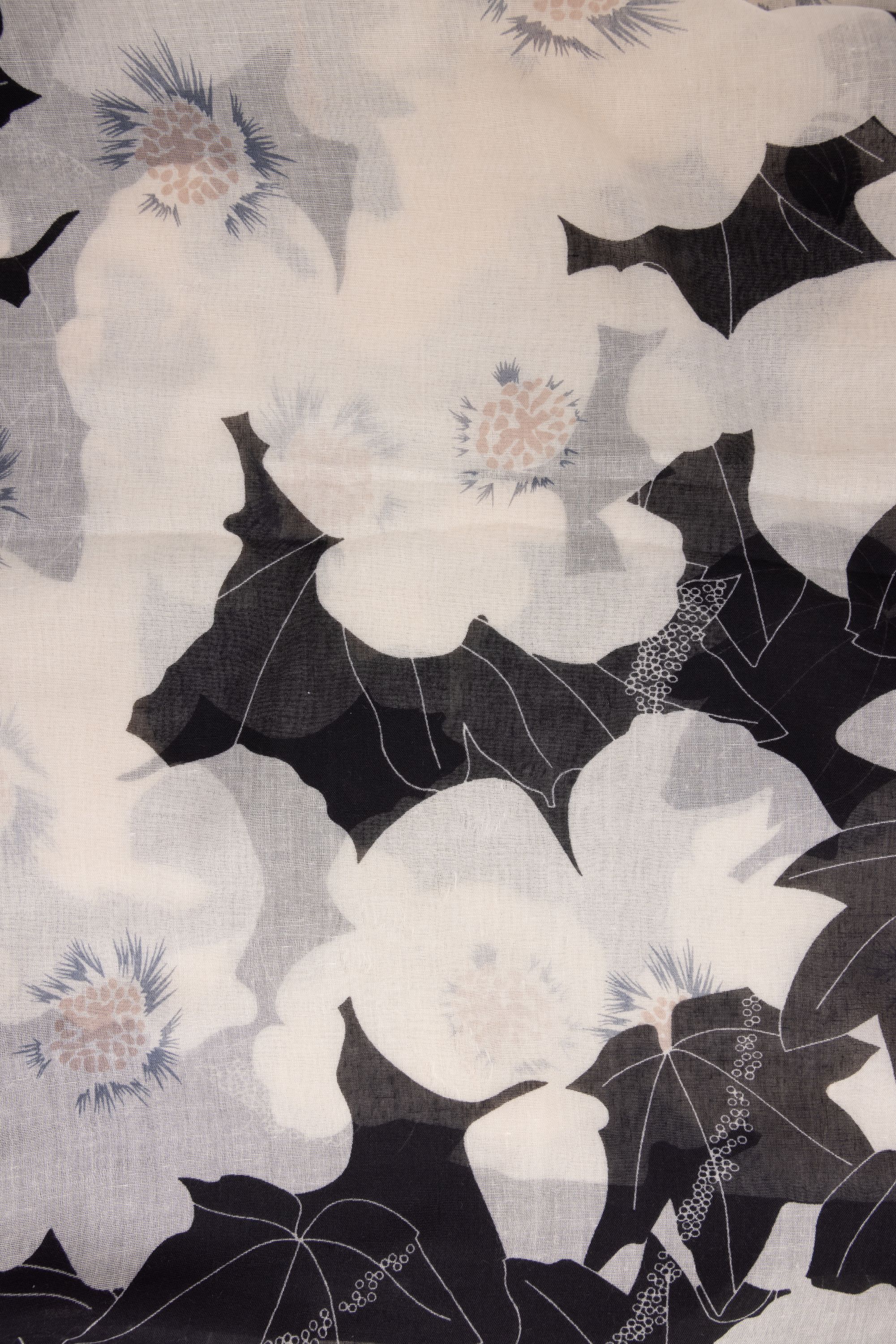 Zwart/witte sjaal met bloemen
