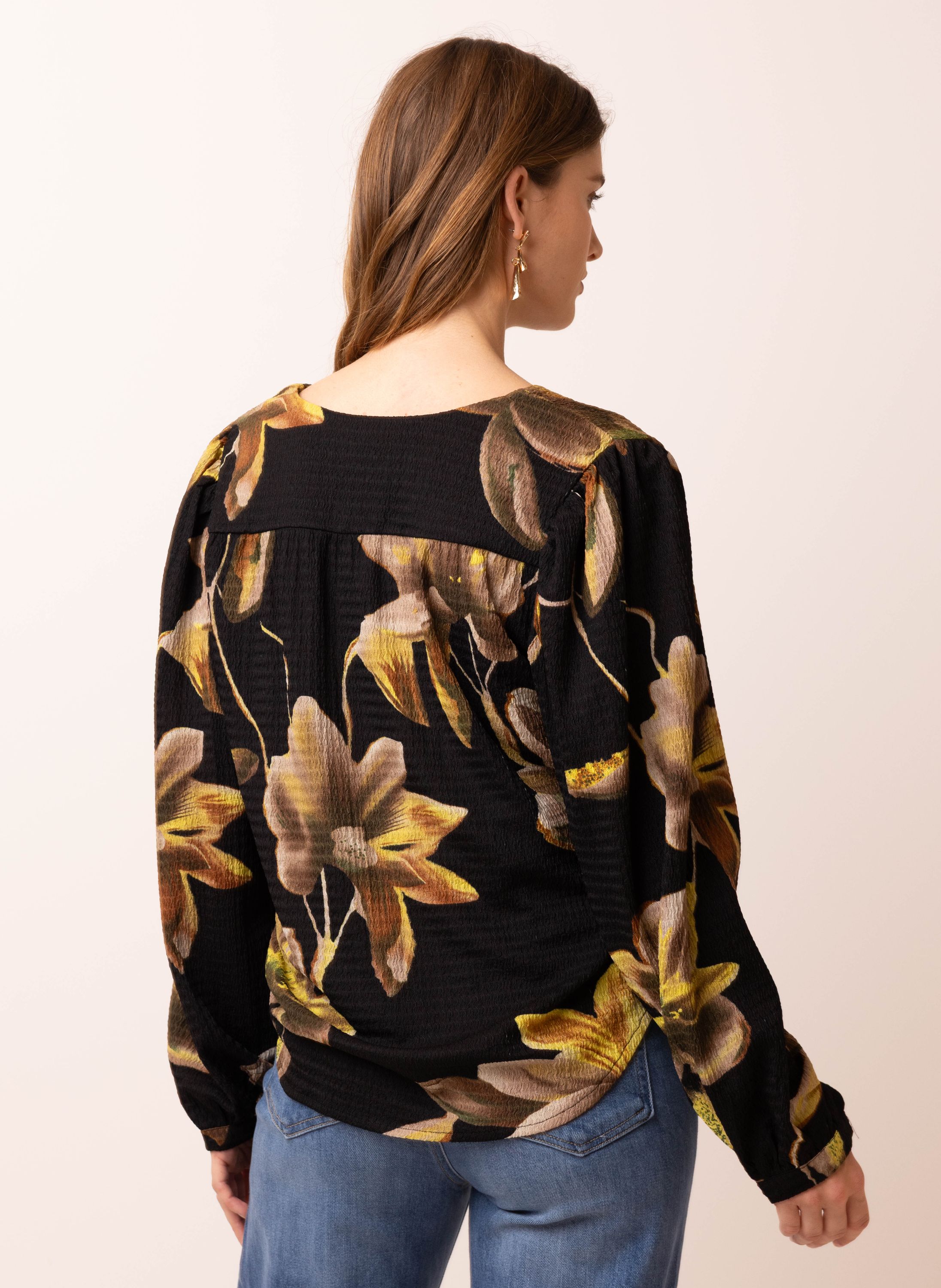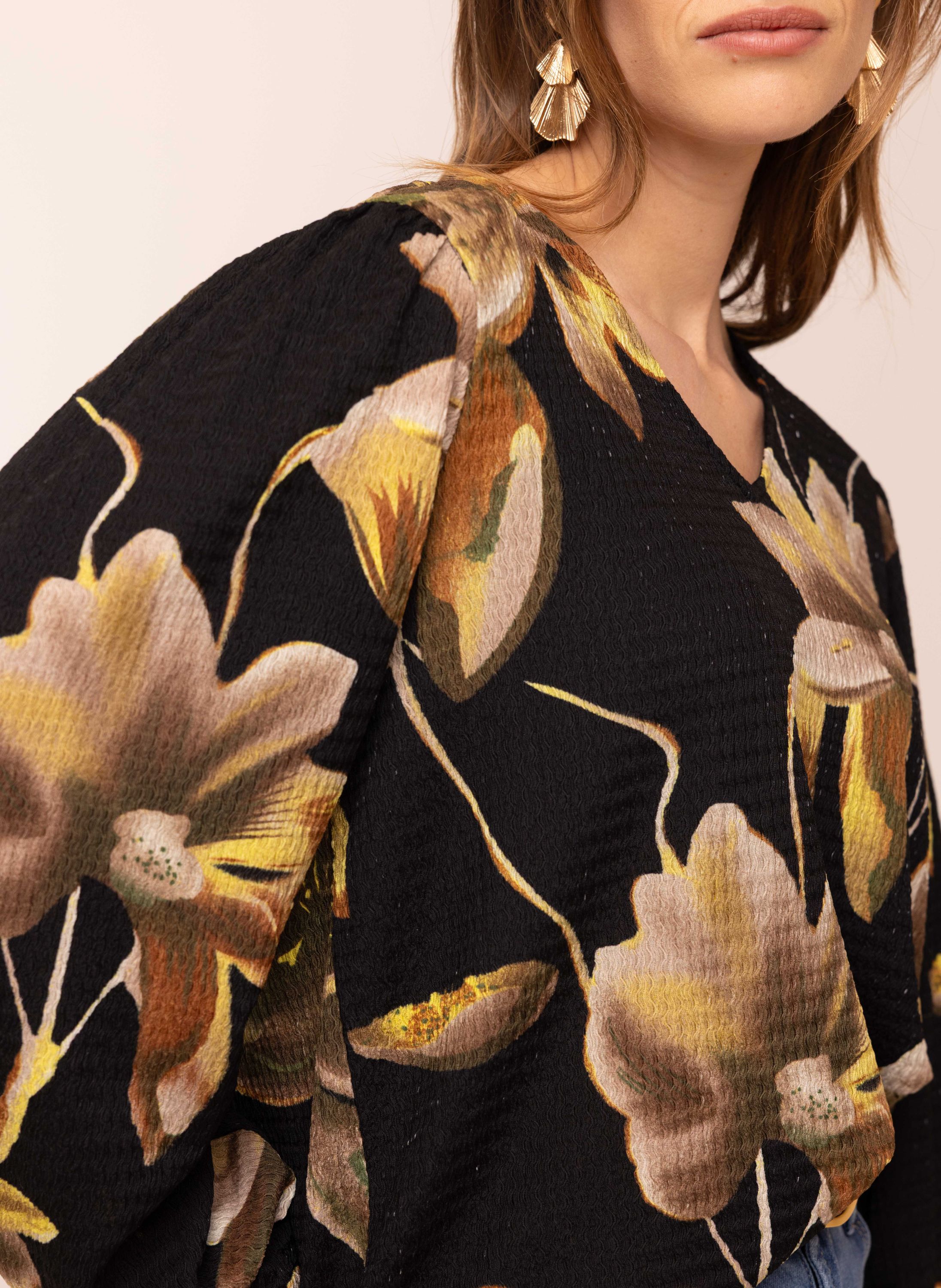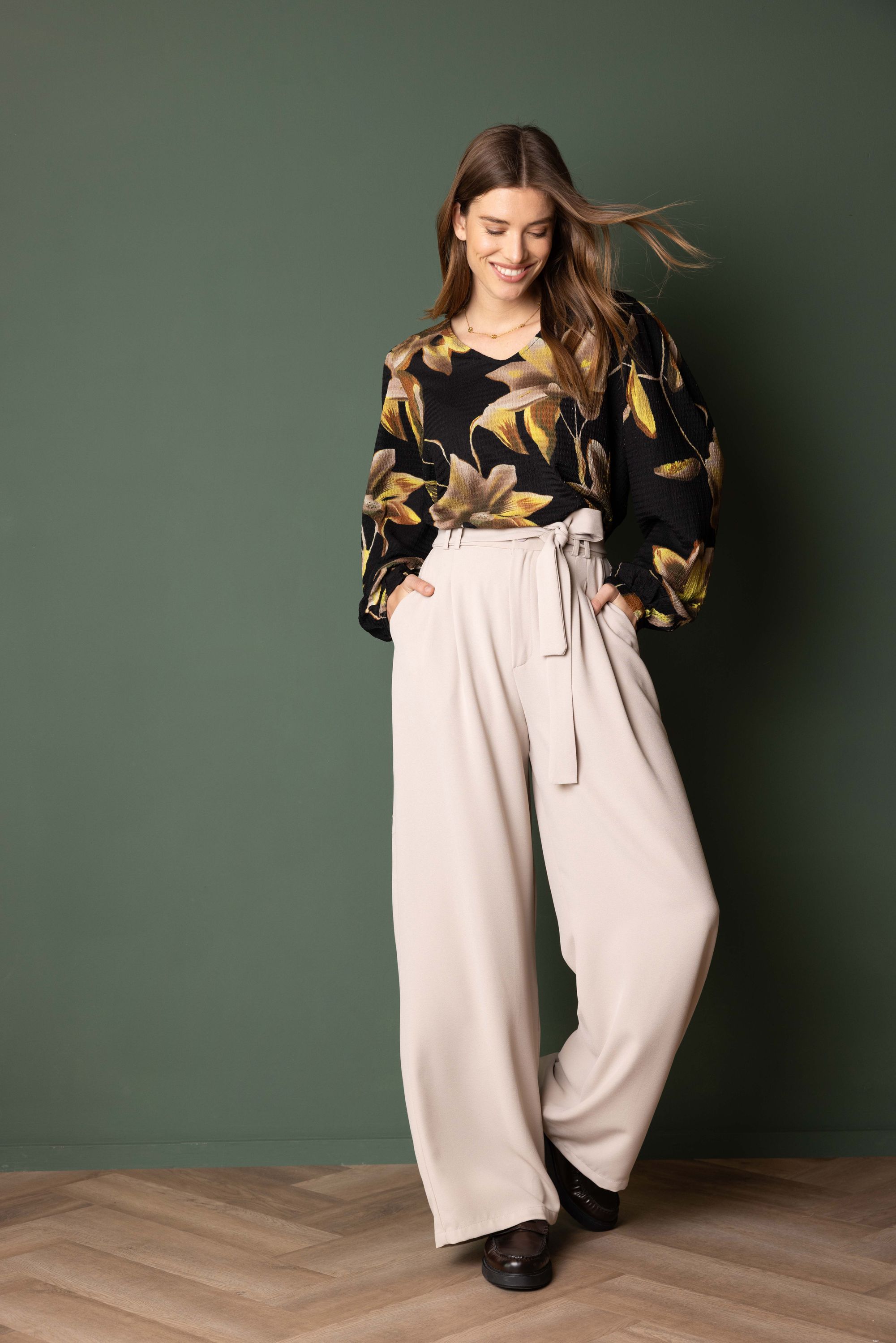 Deze blouse met V-hals en lange pofmouwen is een elegante aanvulling op je outfit.