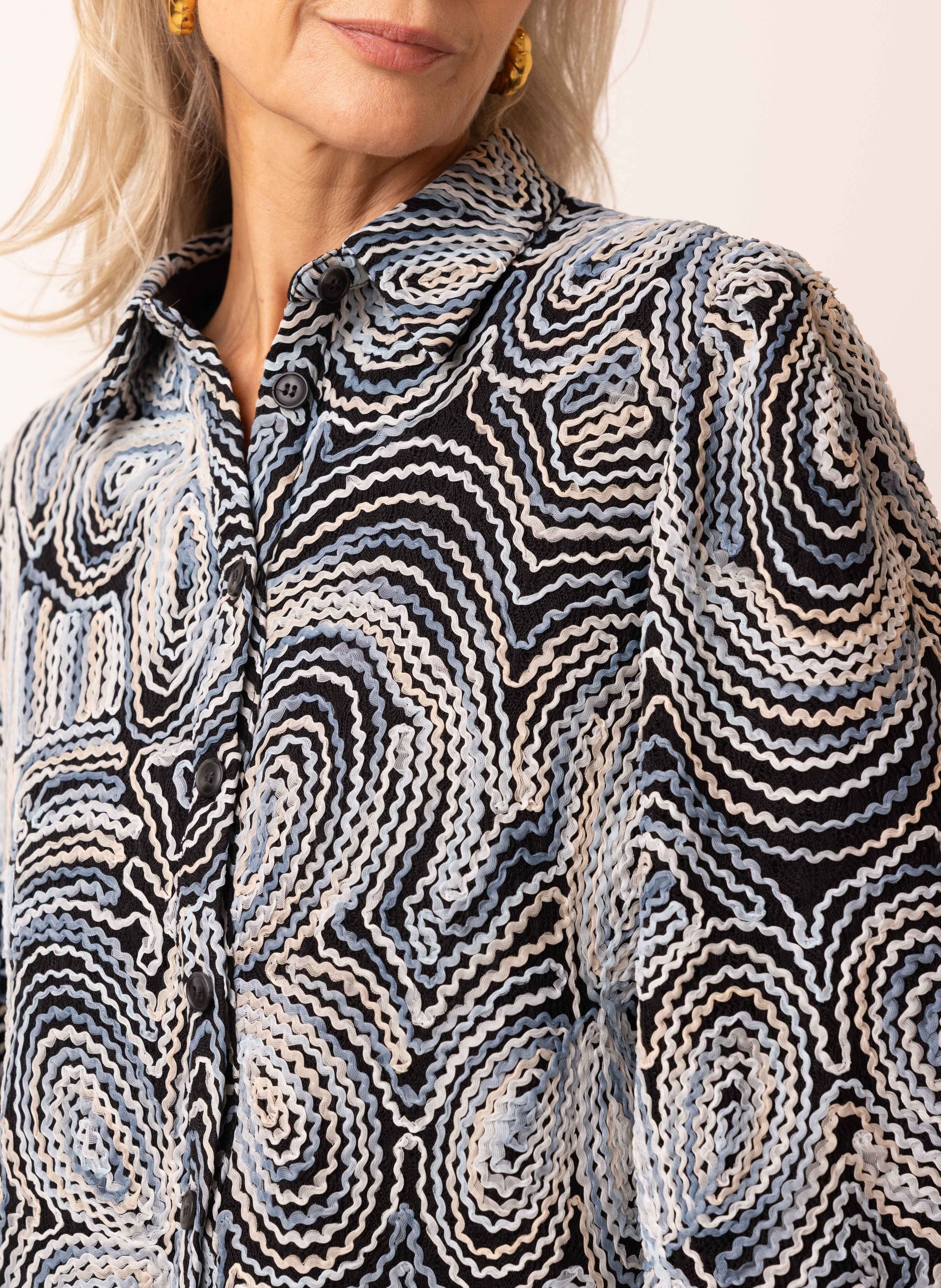 Zwarte blouse met golvend structuurdessin
