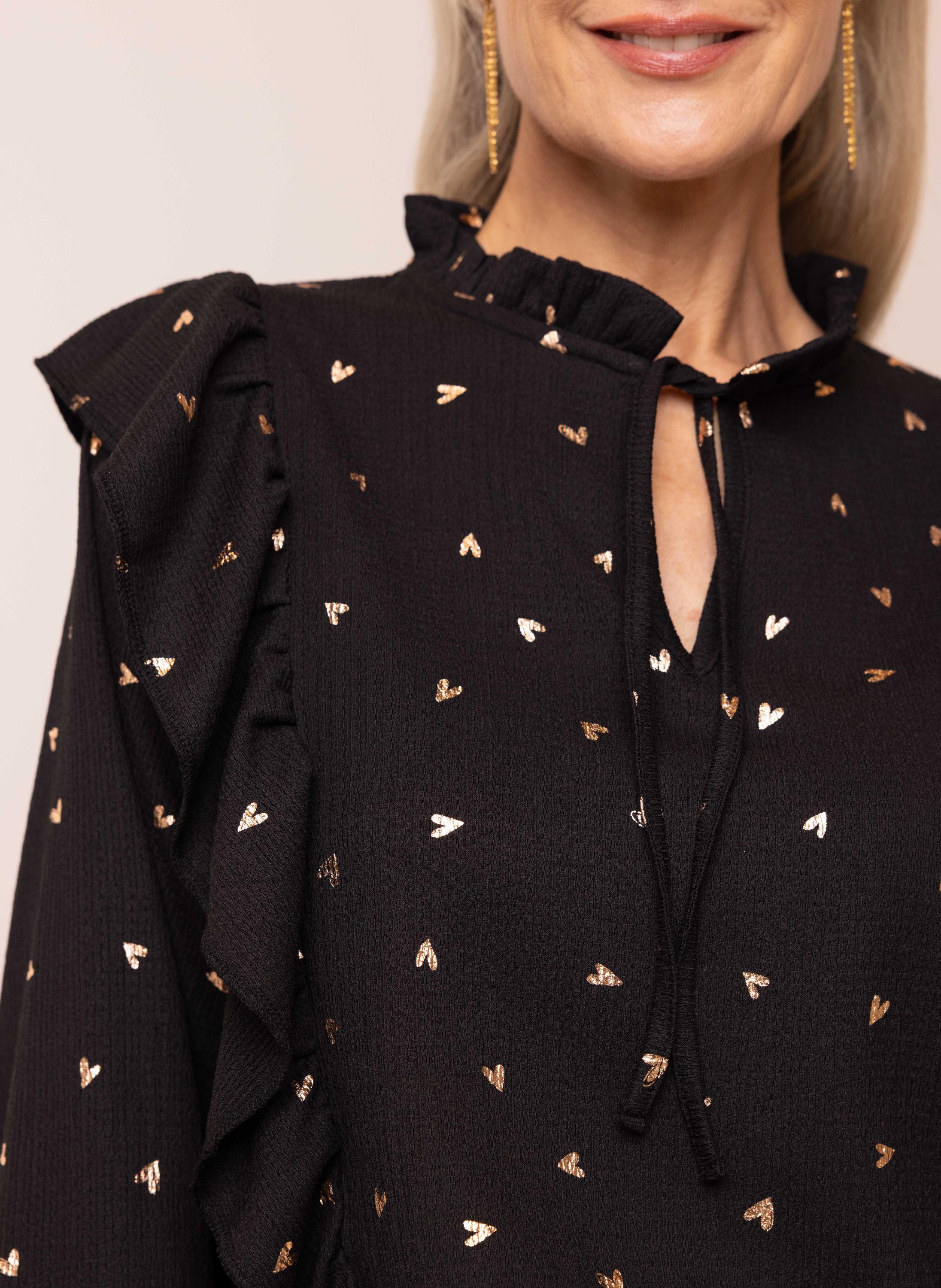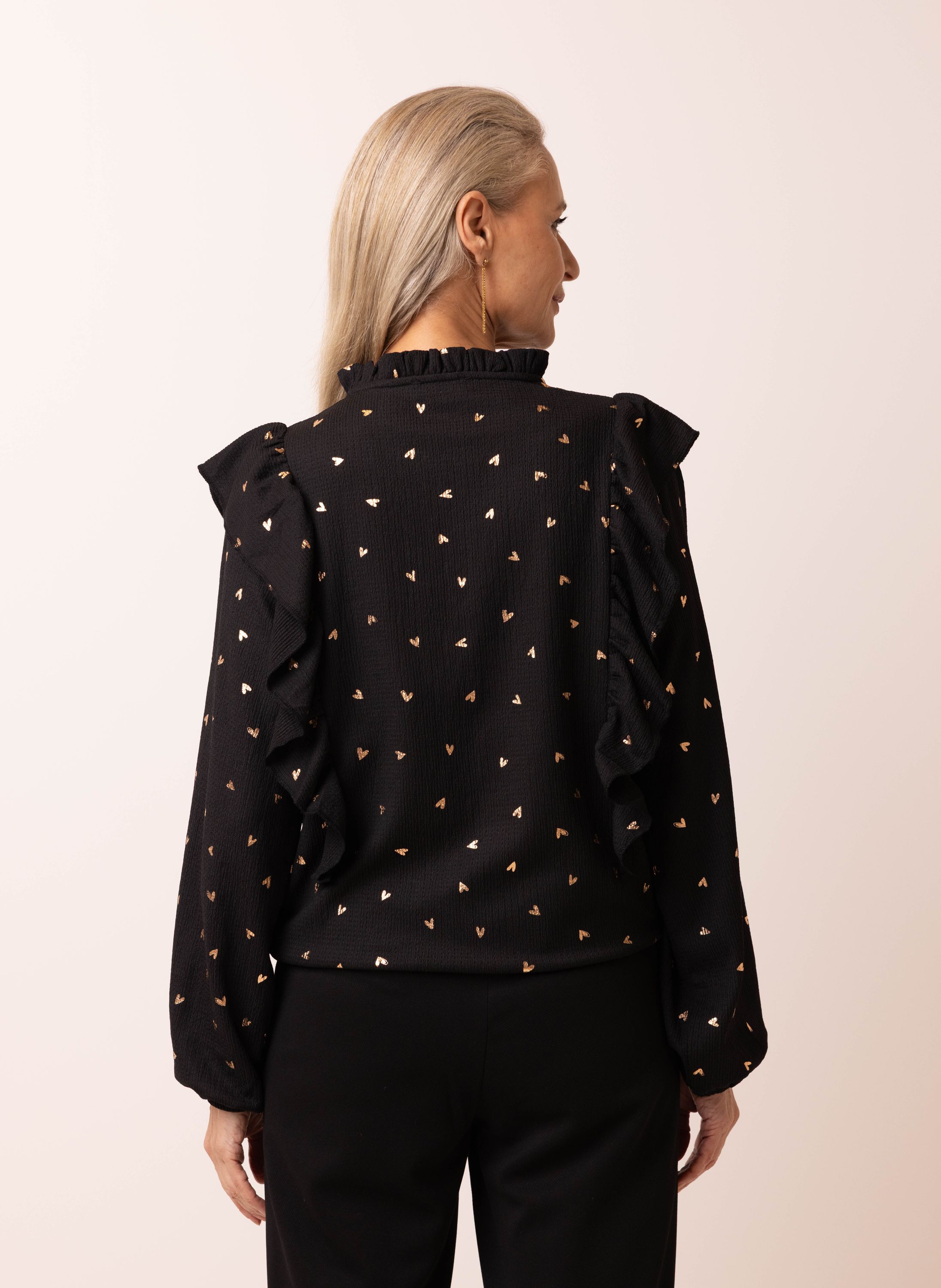Zwarte blouse met goudkleurige hartjes