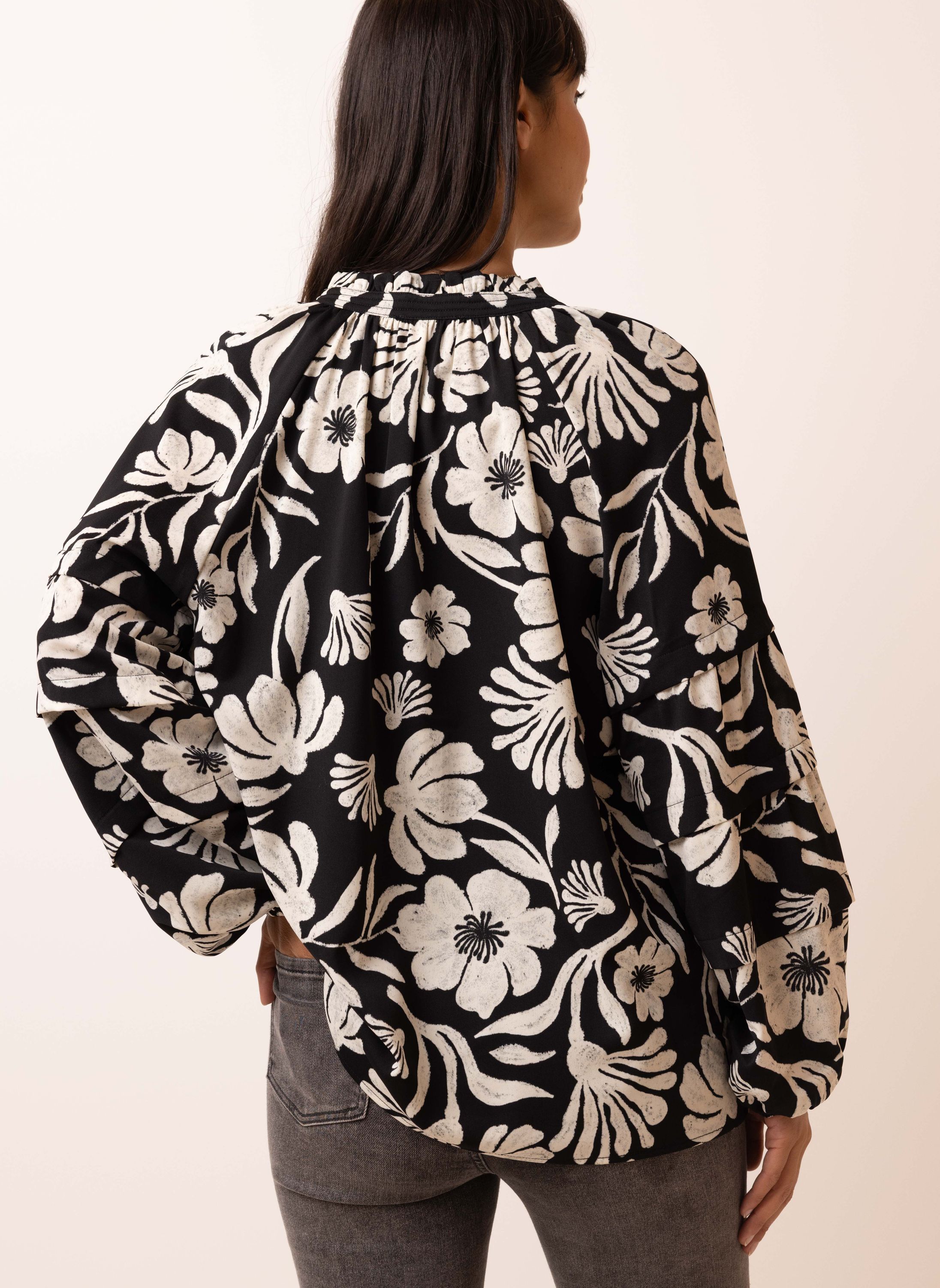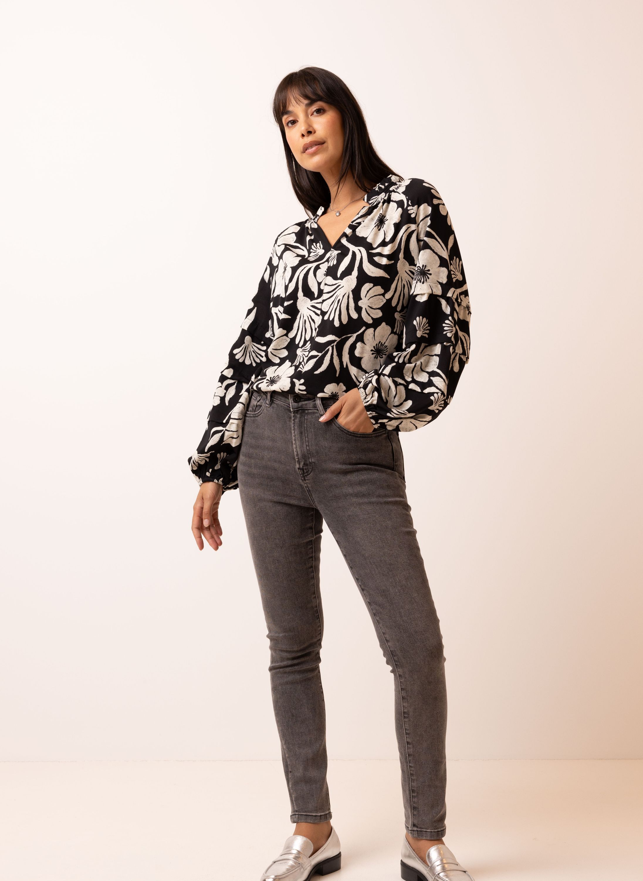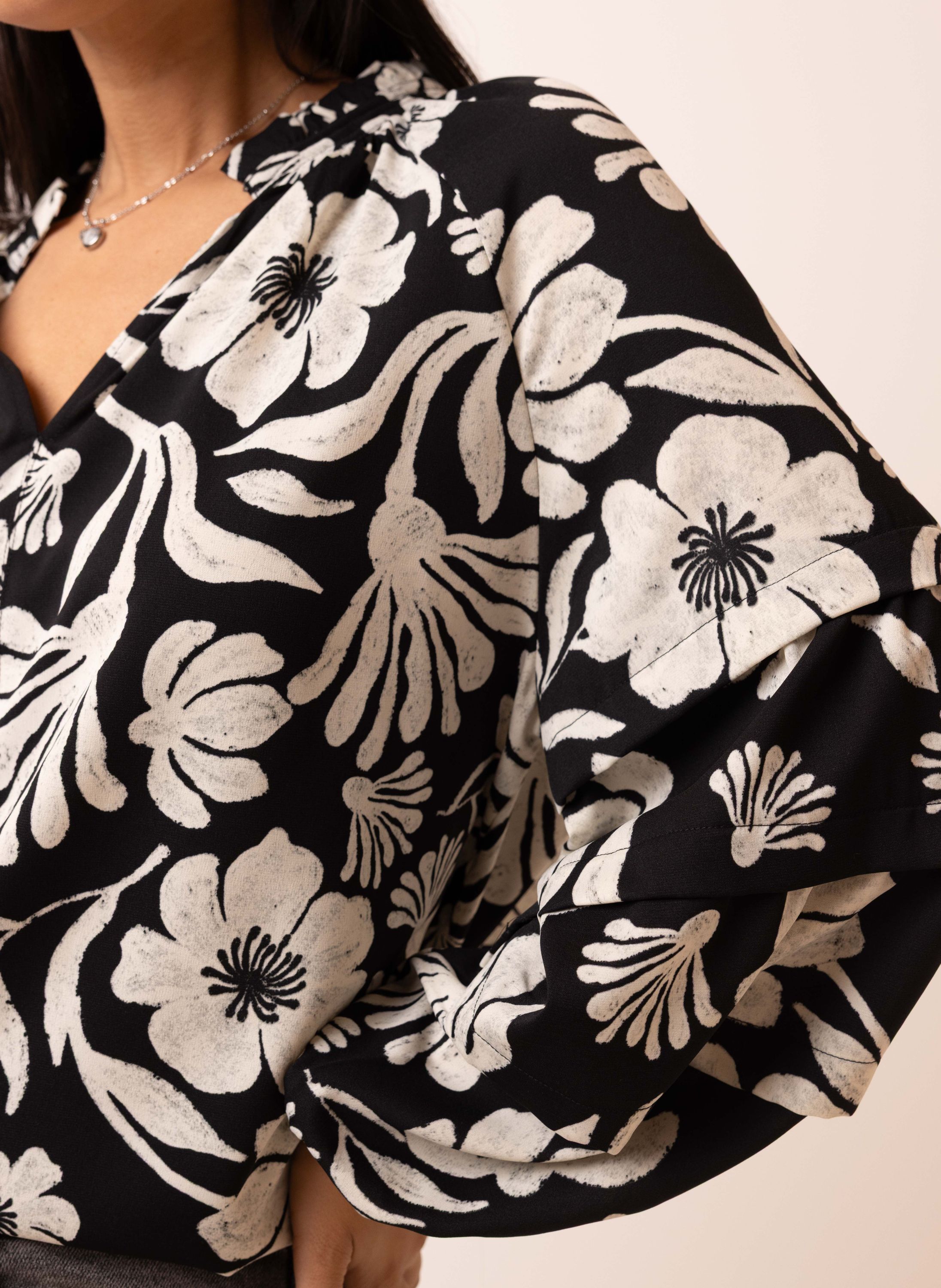 Deze blouse met V-hals heeft ruches en lange ballonmouwen voor een vrouwelijke uitstraling.