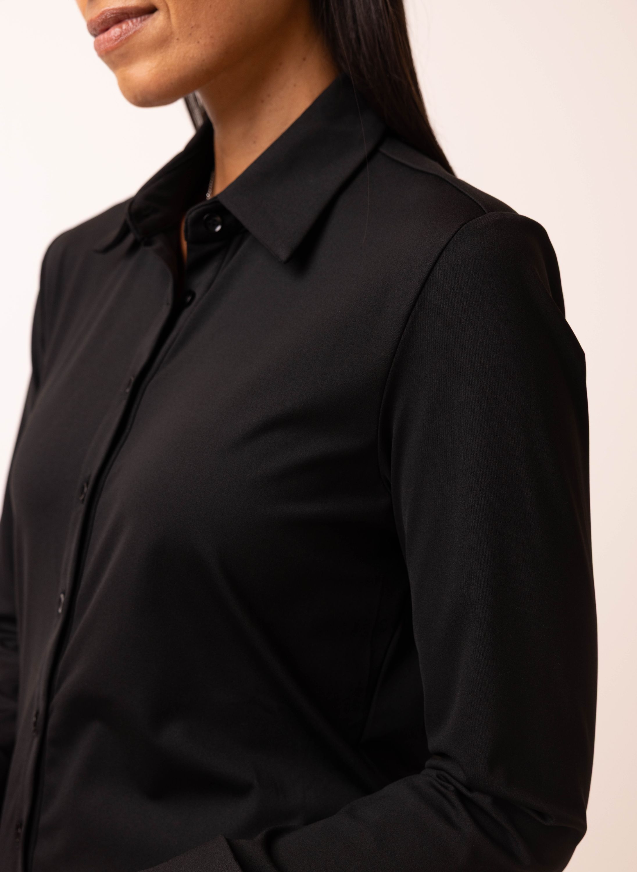 Deze blouse met klassieke kraag heeft een knoopsluiting en lange mouwen.