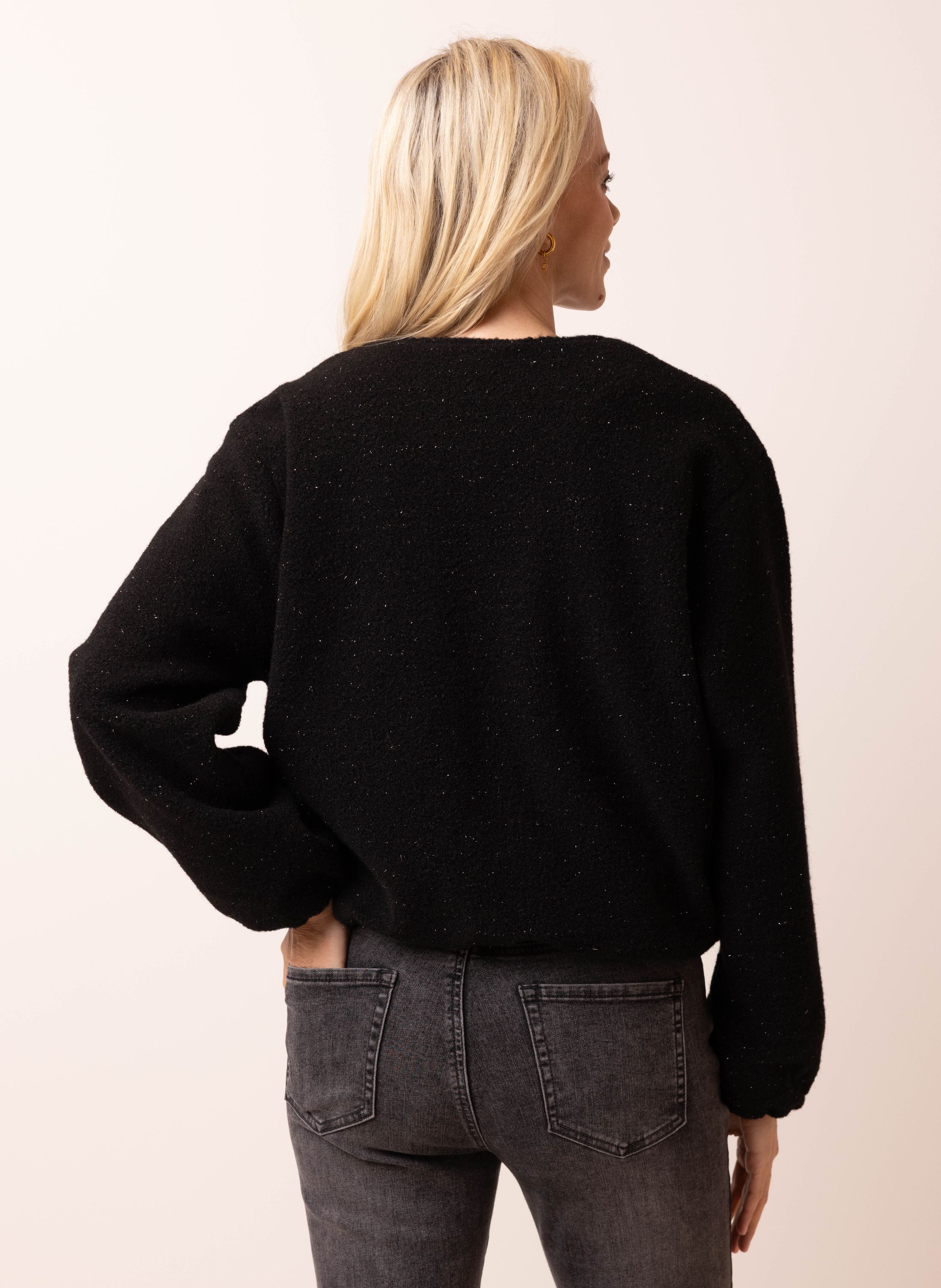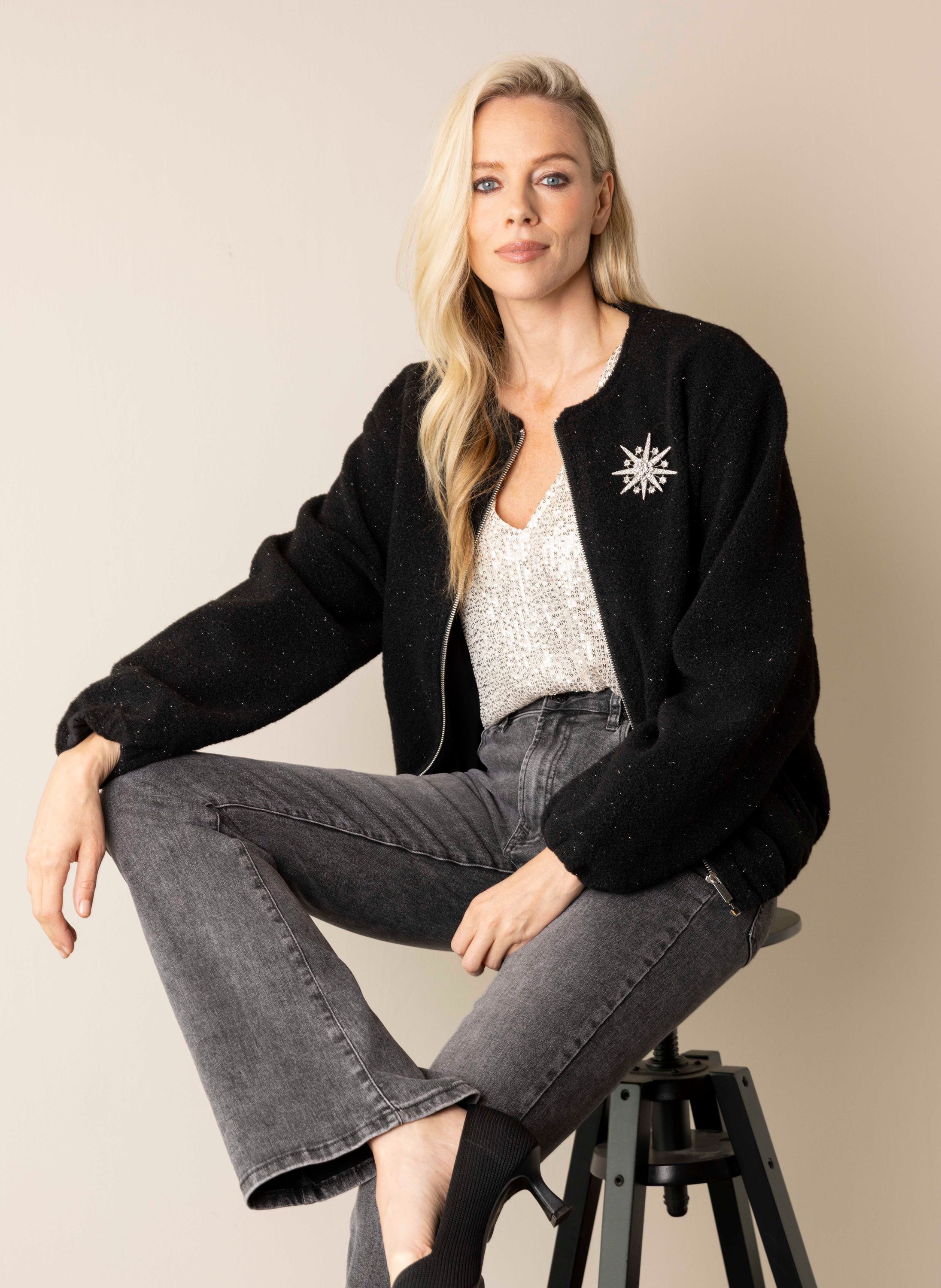 Zwarte bomberjas met subtiele zilverkleurige lurex