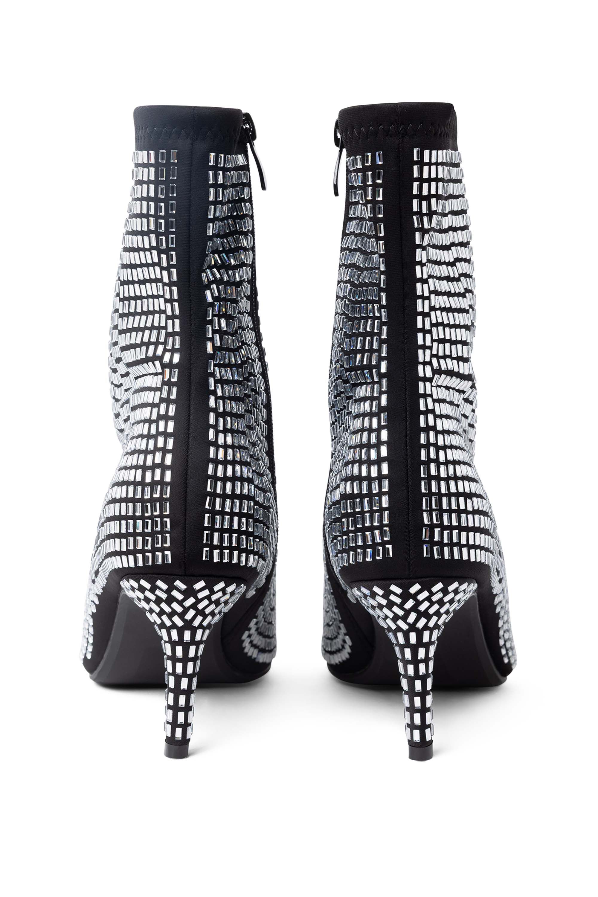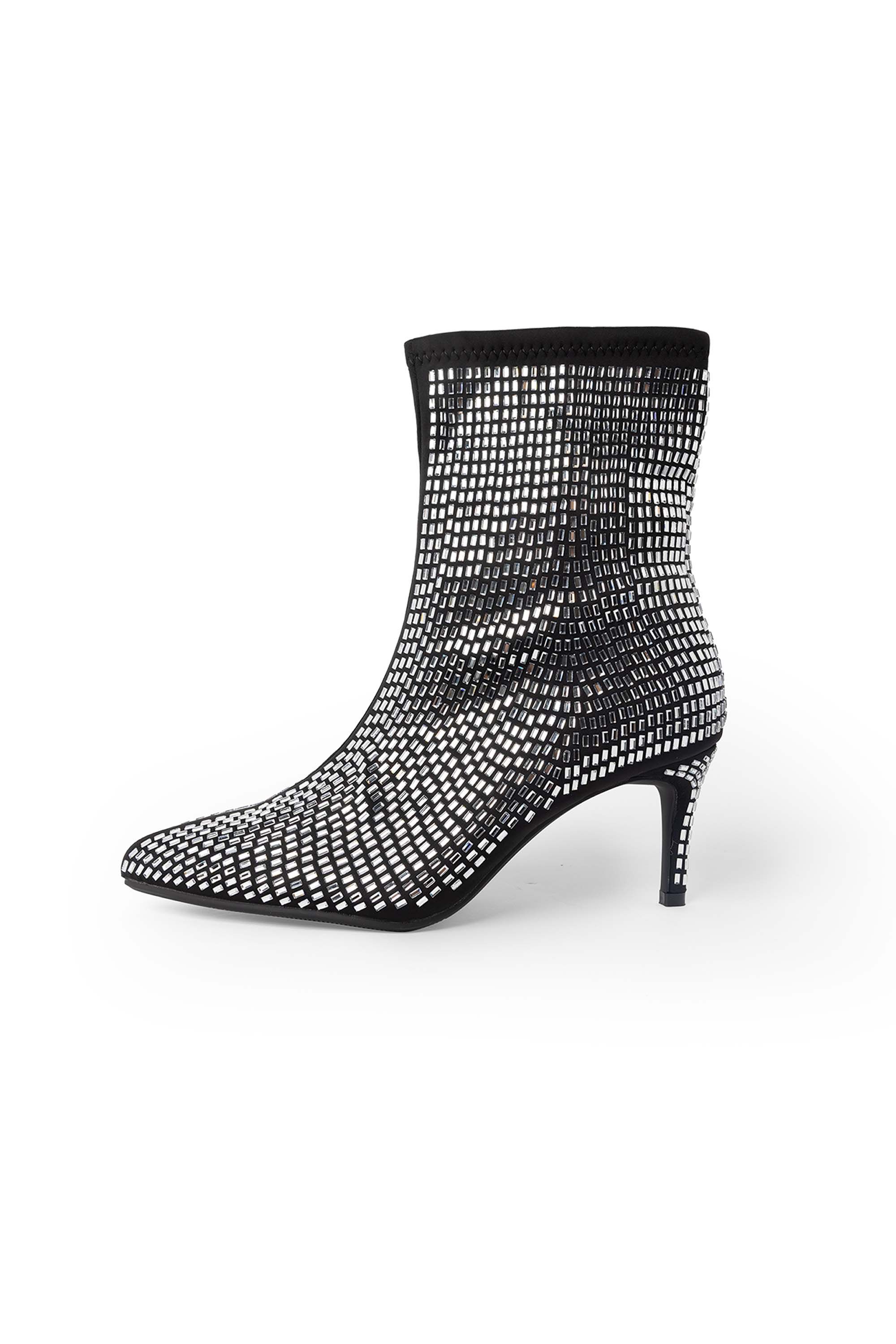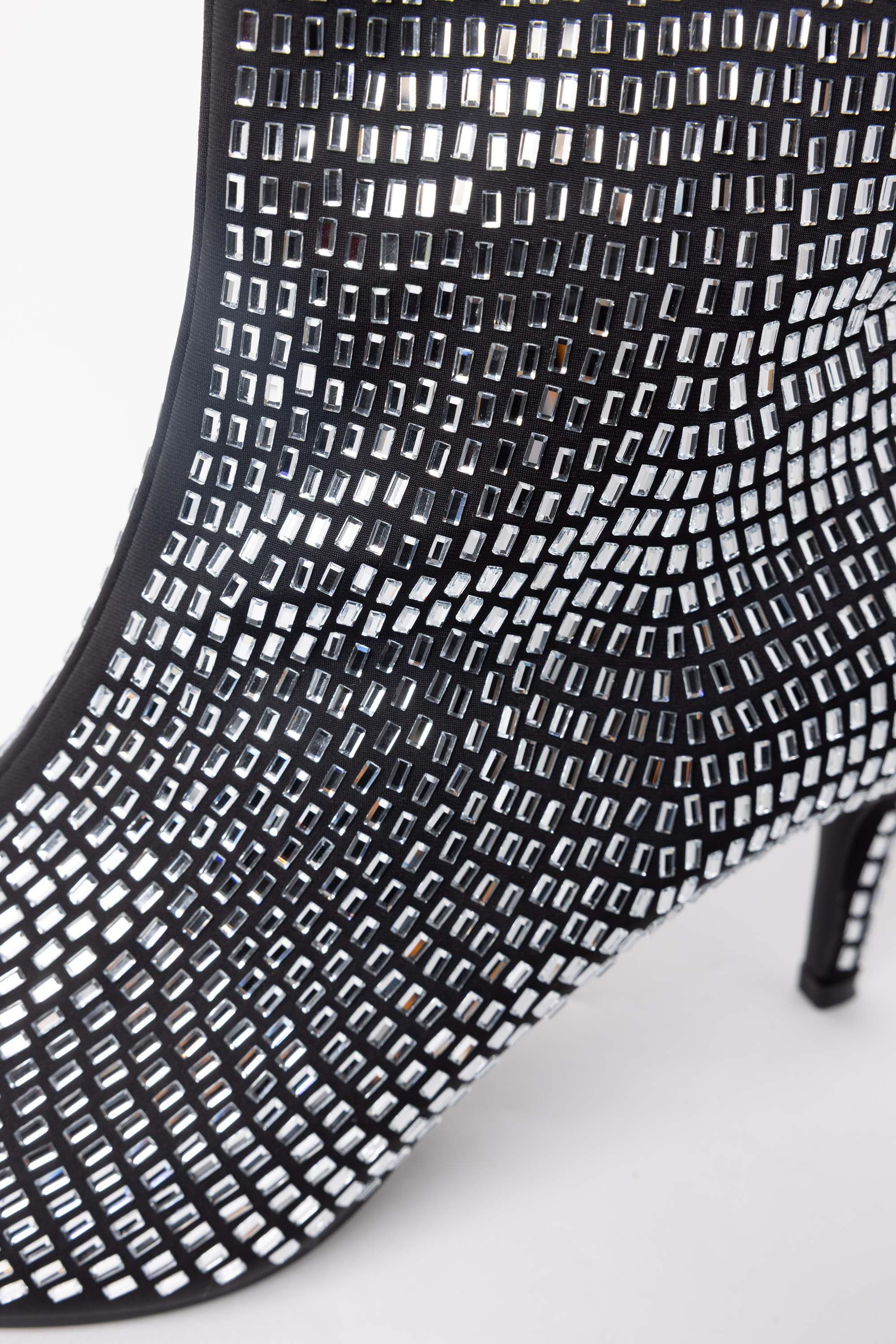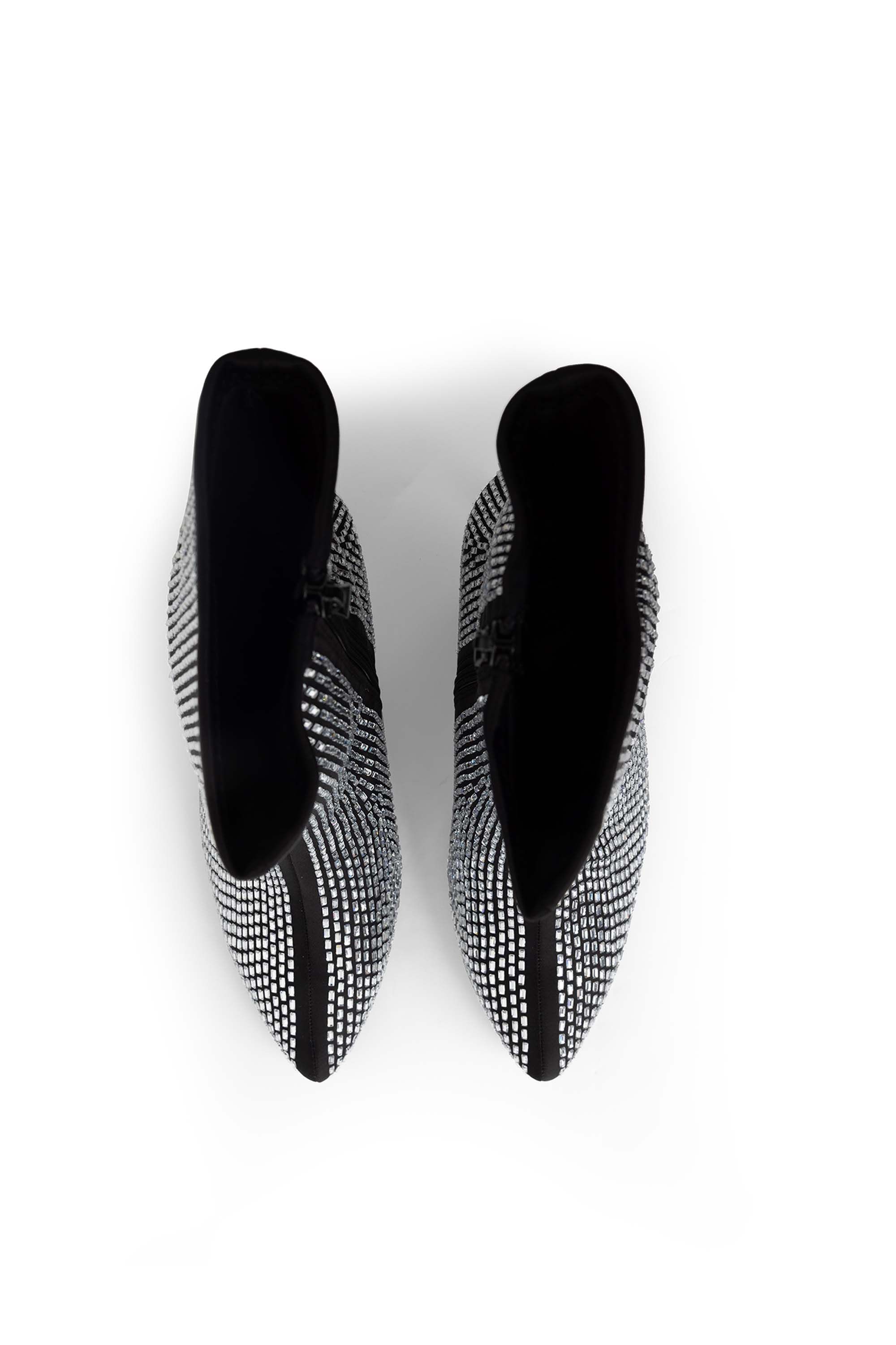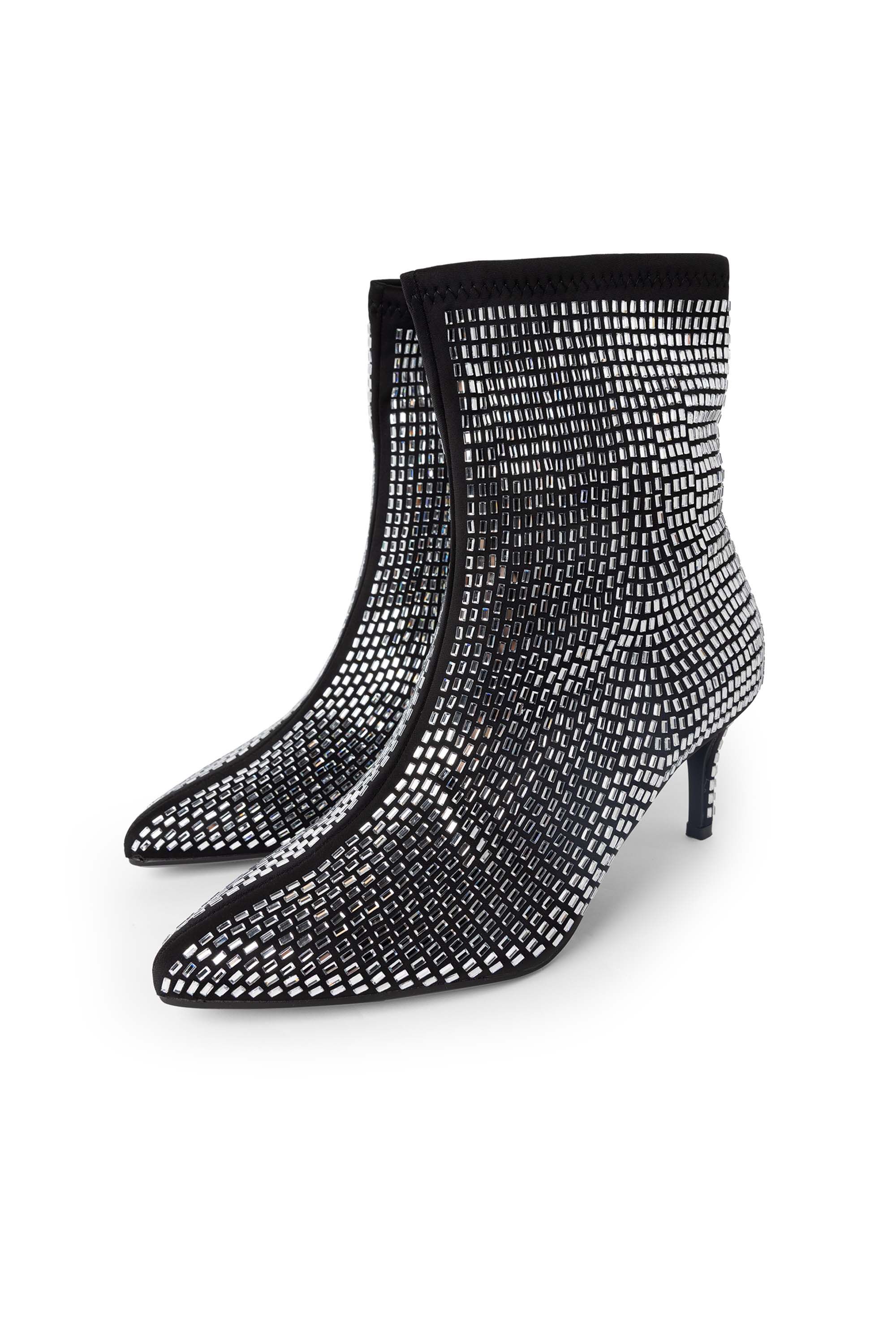 Deze enkellaars heeft glinsterende steentjes en heeft een smalle hak en puntneus. De sprankelende afwerking geeft elke outfit een feestelijke en vrouwelijke touch.