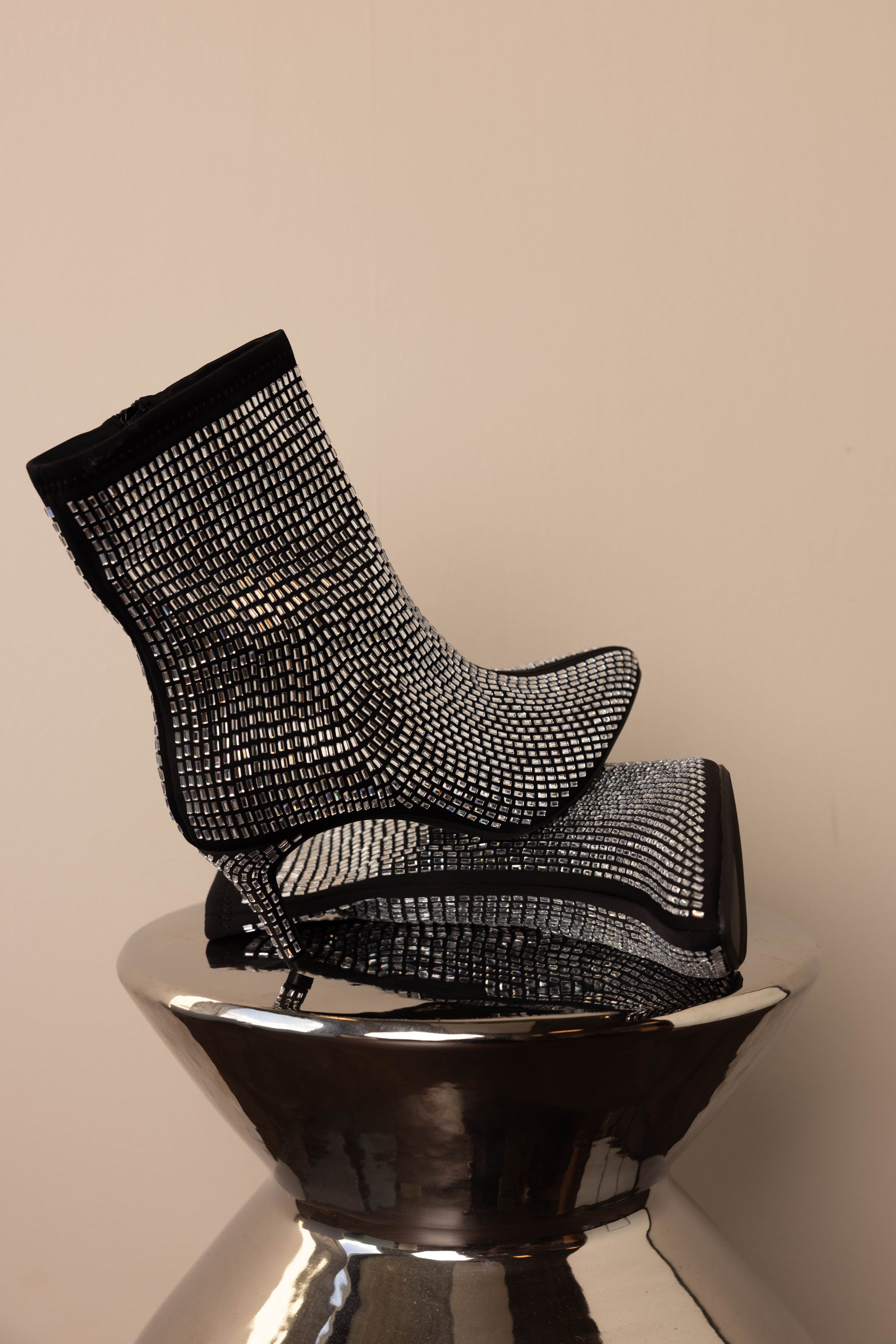 Zwarte enkellaars met zilverkleurige steentjes