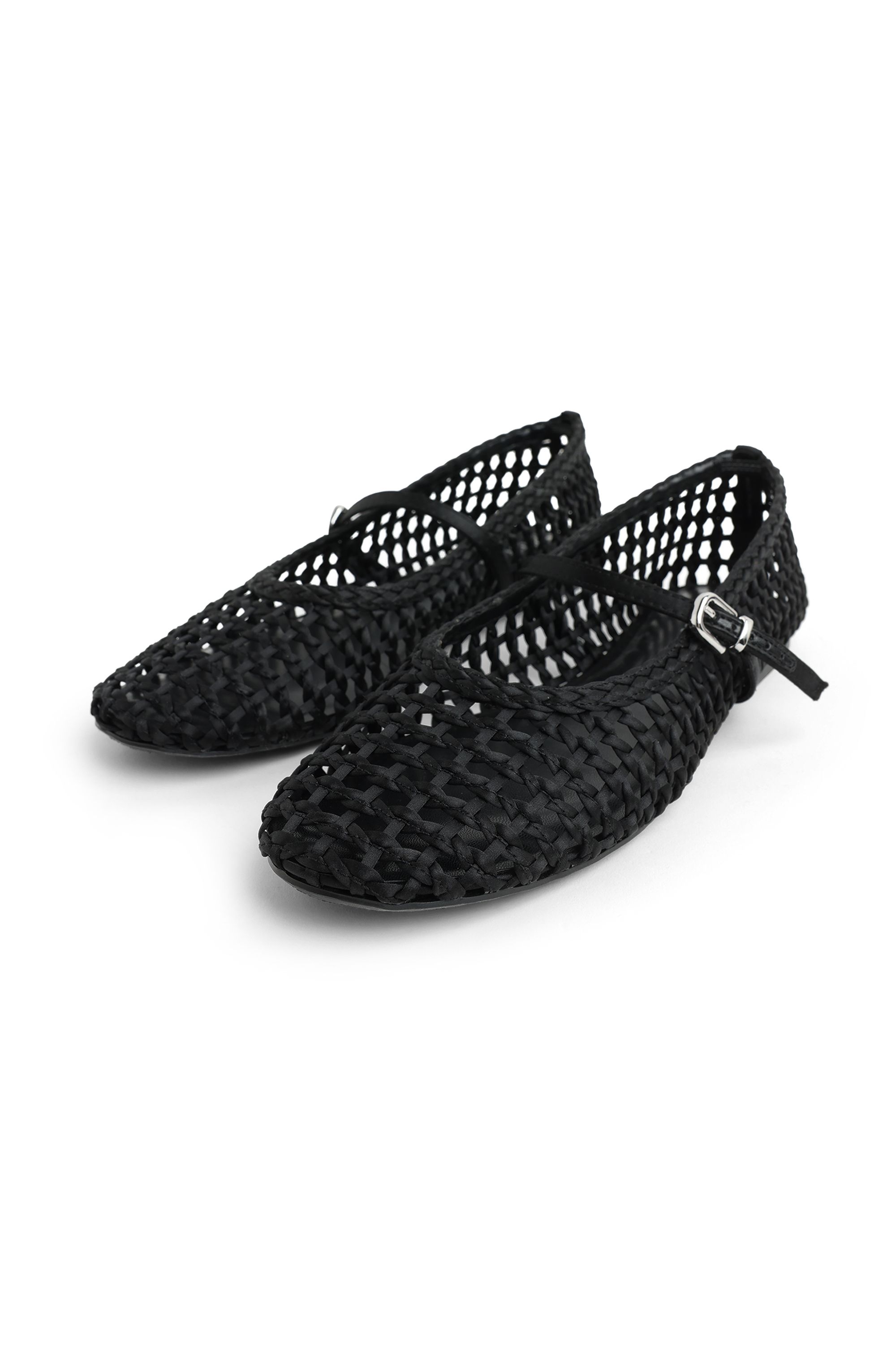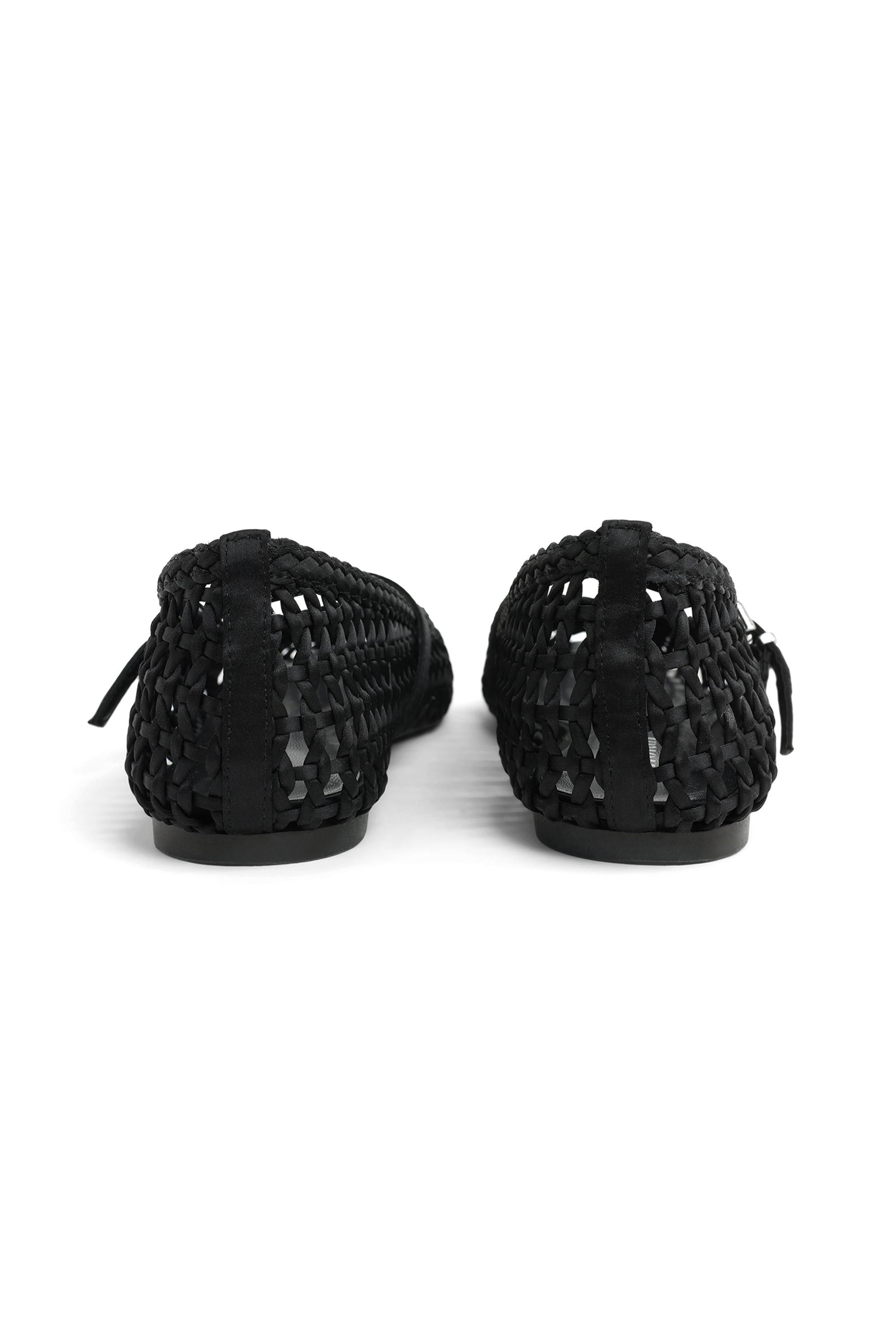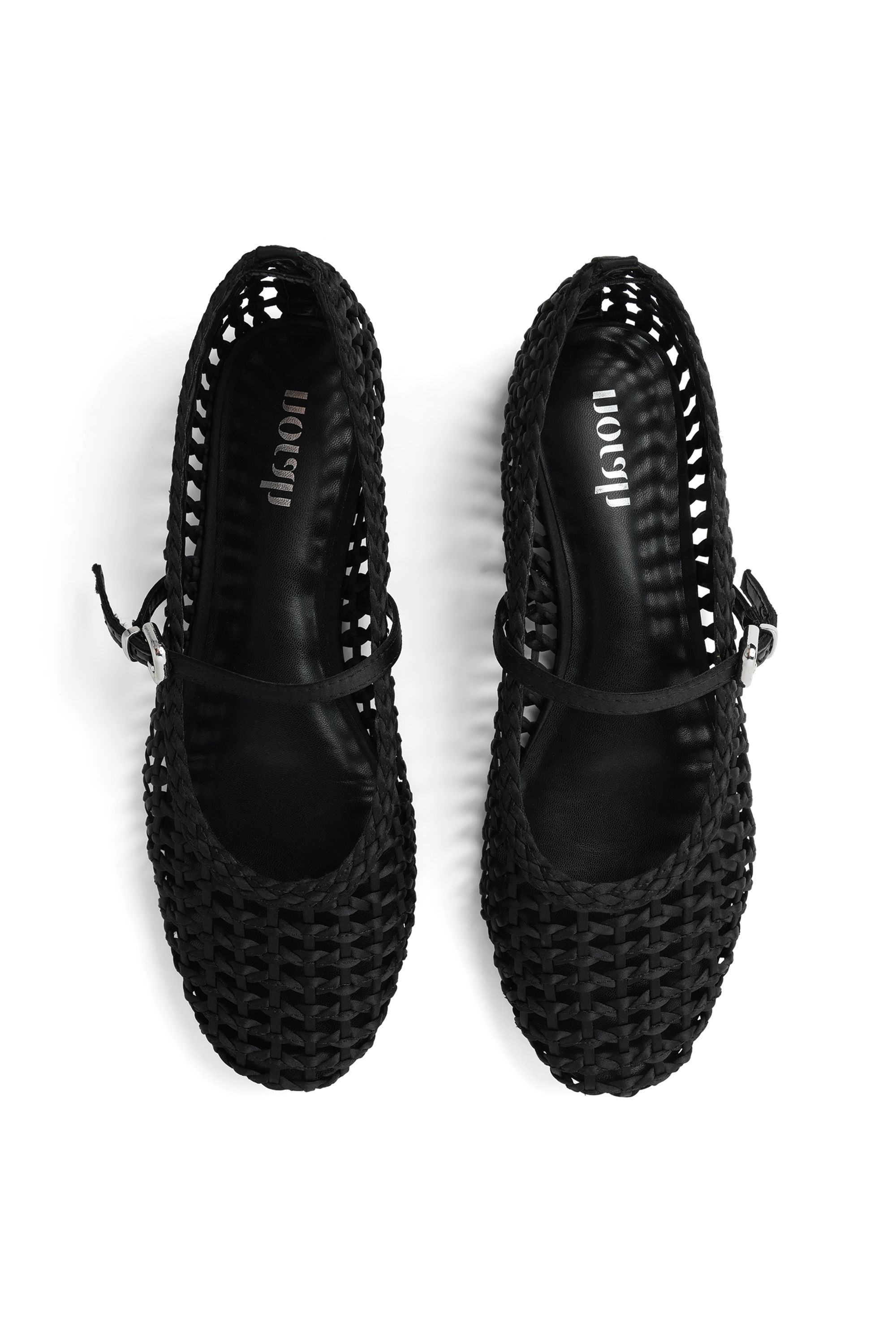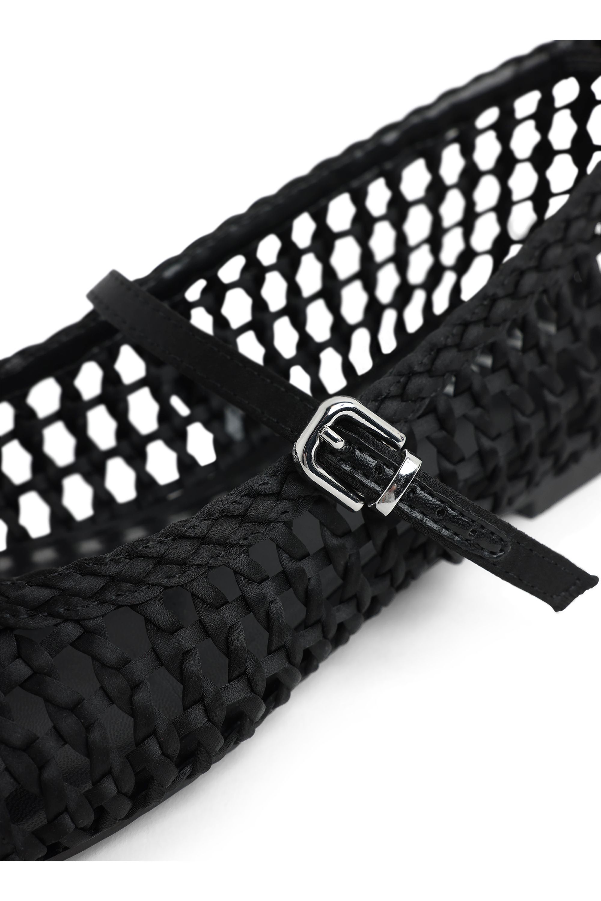 Deze ballerina heeft een geweven structuur en een elegante siergesp op de wreef. De platte zool zorgt voor een comfortabele pasvorm, terwijl het opengewerkte ontwerp het model een luchtige en verfijnde uitstraling geeft. Perfect voor een stijlvolle en zomerse look.