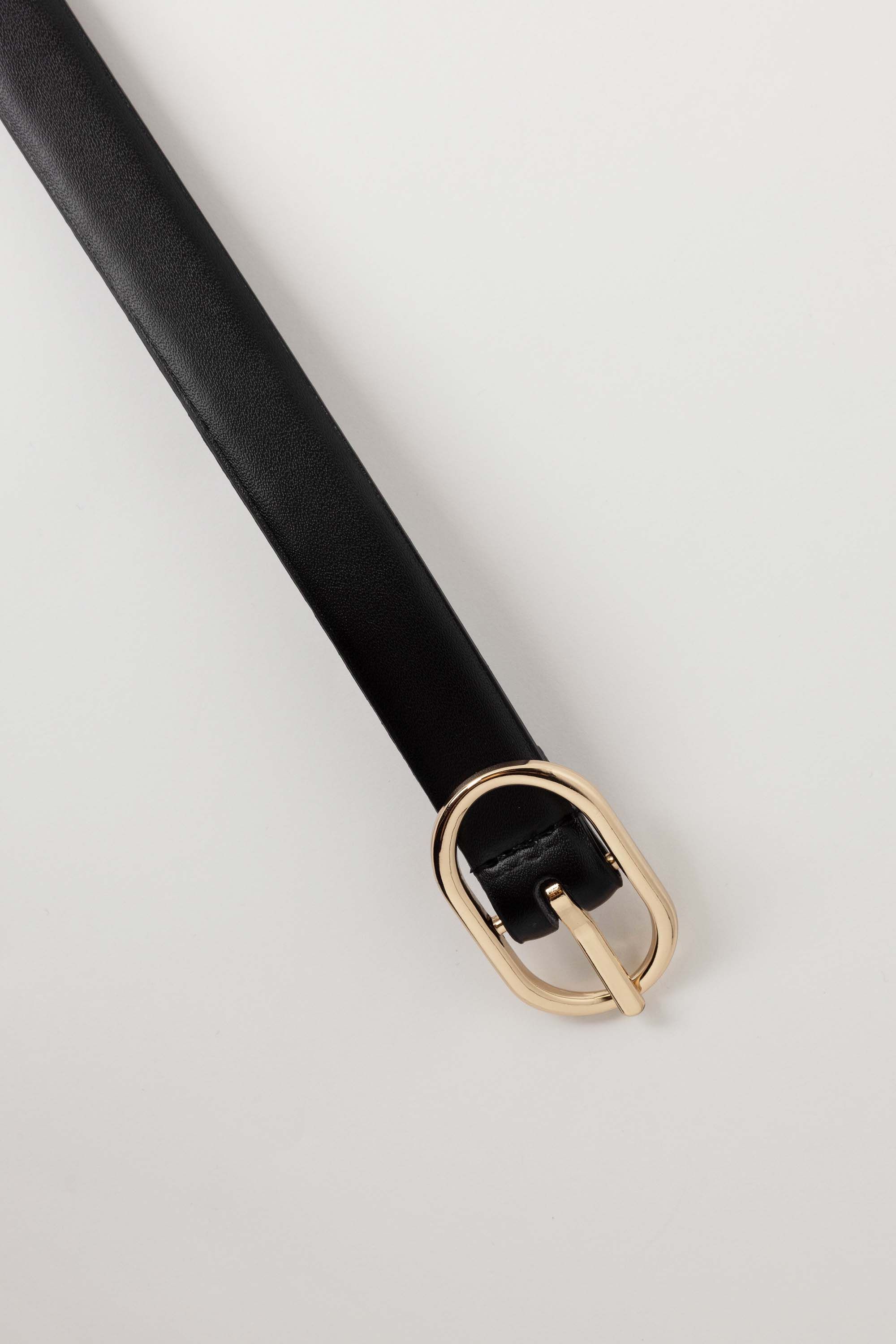 Deze riem met goudkleurige gesp is een tijdloze accessoire. Afmeting: S: 95 cm, M: 105 cm, L: 115 cm, XL: 125 cm.