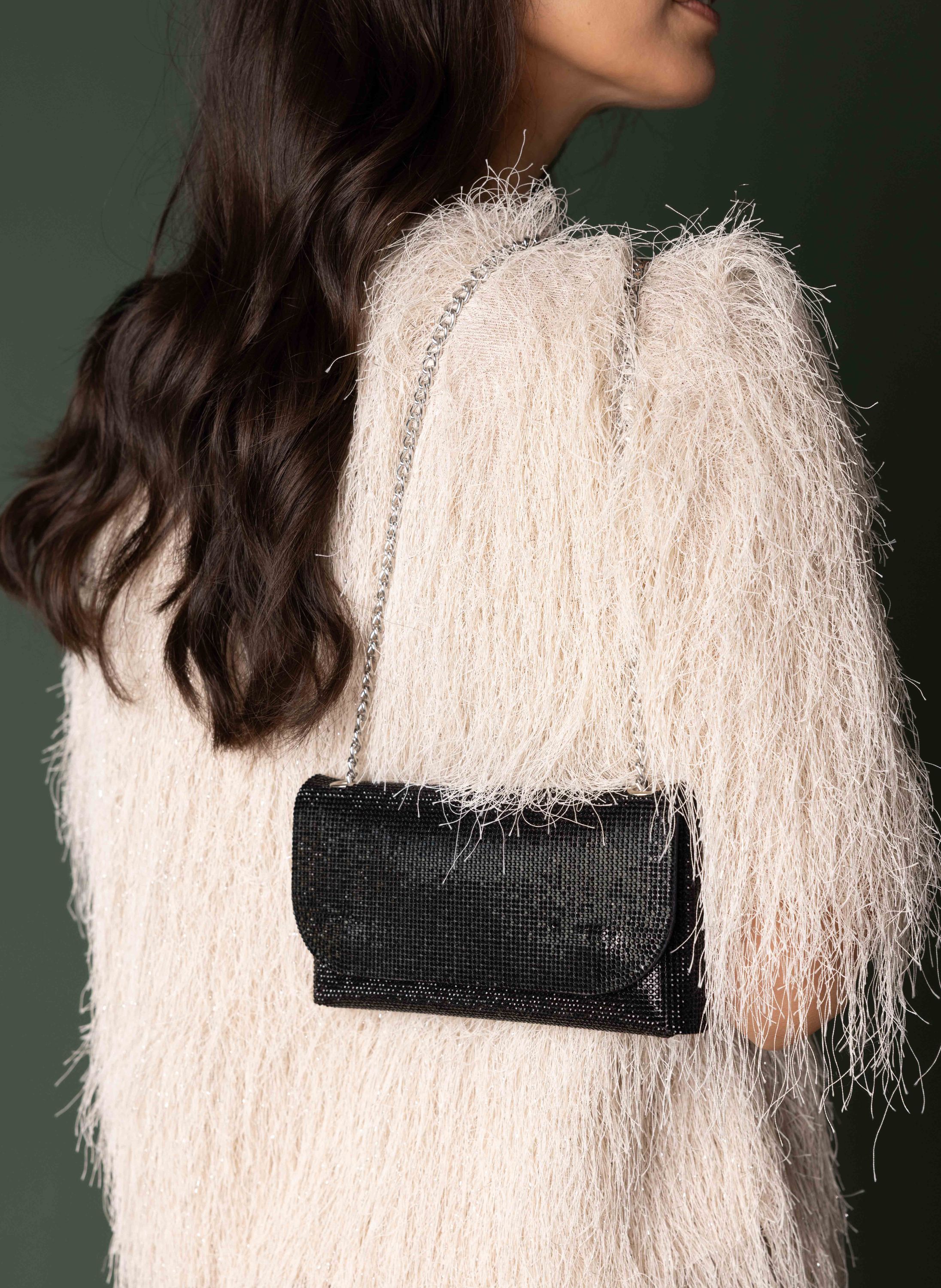 Deze feestelijke tas met schakelhengsel en knoopsluiting is een stijlvolle finishing touch voor je feestlook. Afmeting: Lengte: 20,5 cm. Breedte: 3 cm. Hoogte: 11 cm