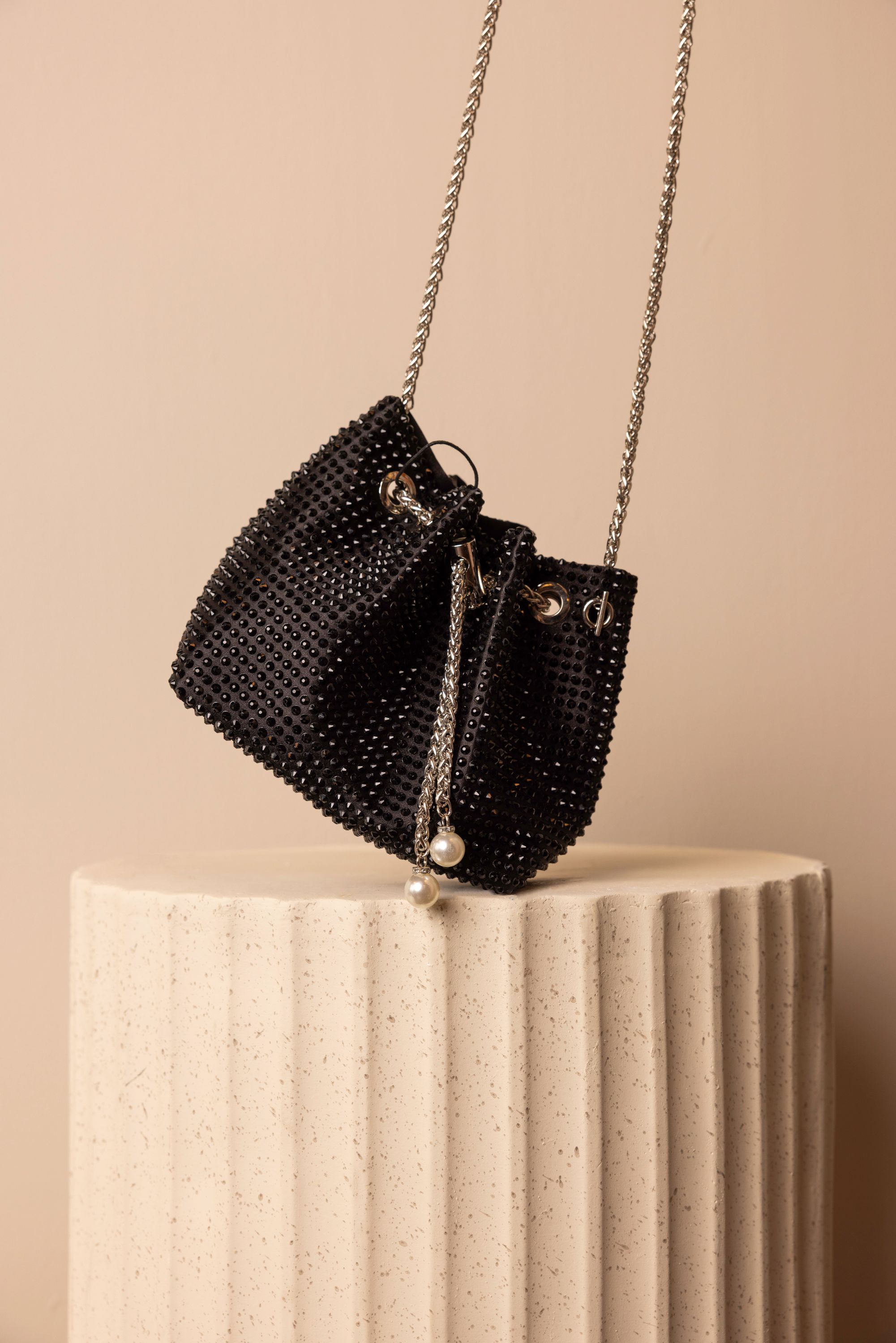 Zwarte schoudertas met zwarte strass steentjes