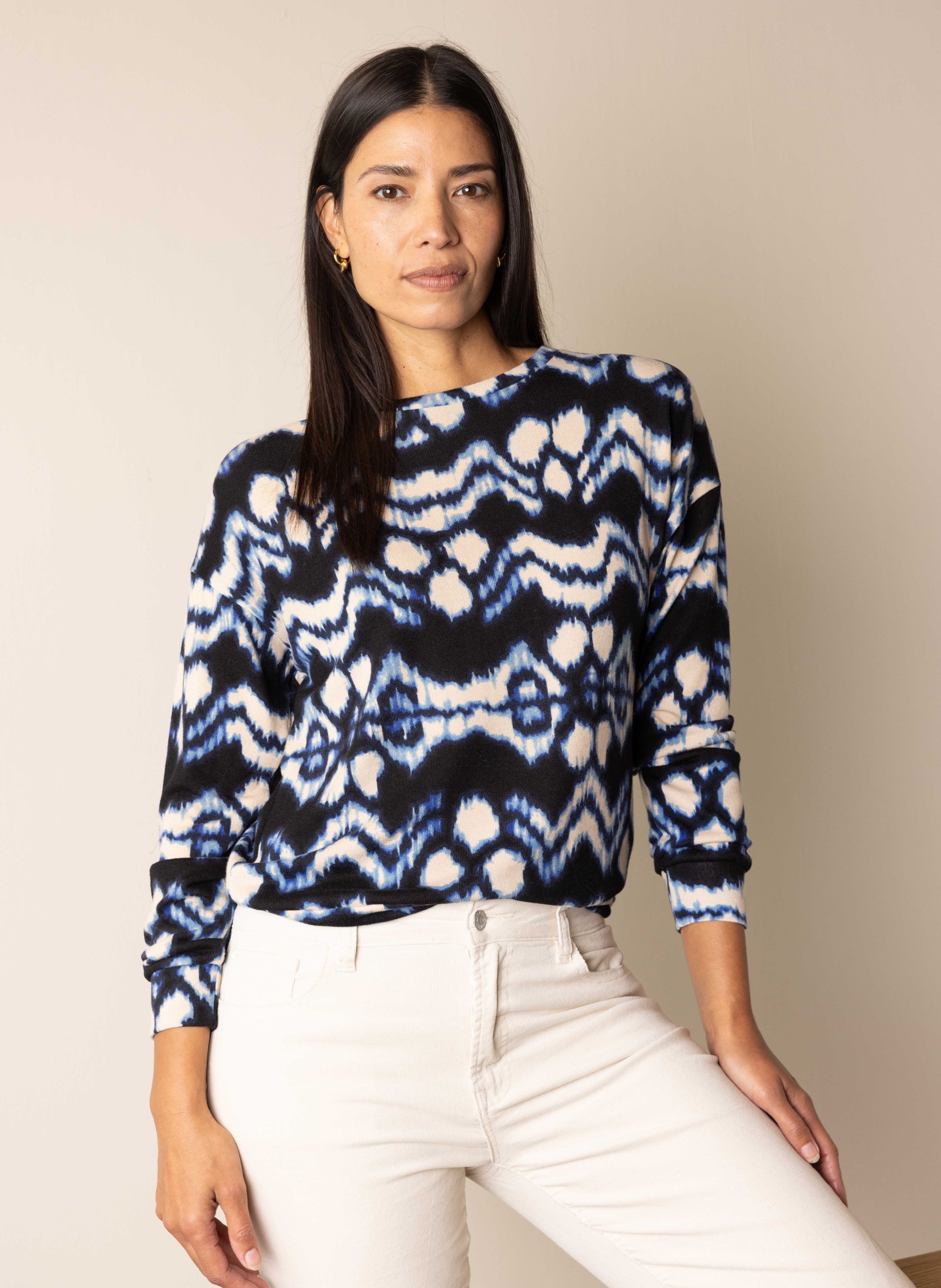 Deze trui met ronde hals en lange mouwen is gemaakt van een zachte stof.