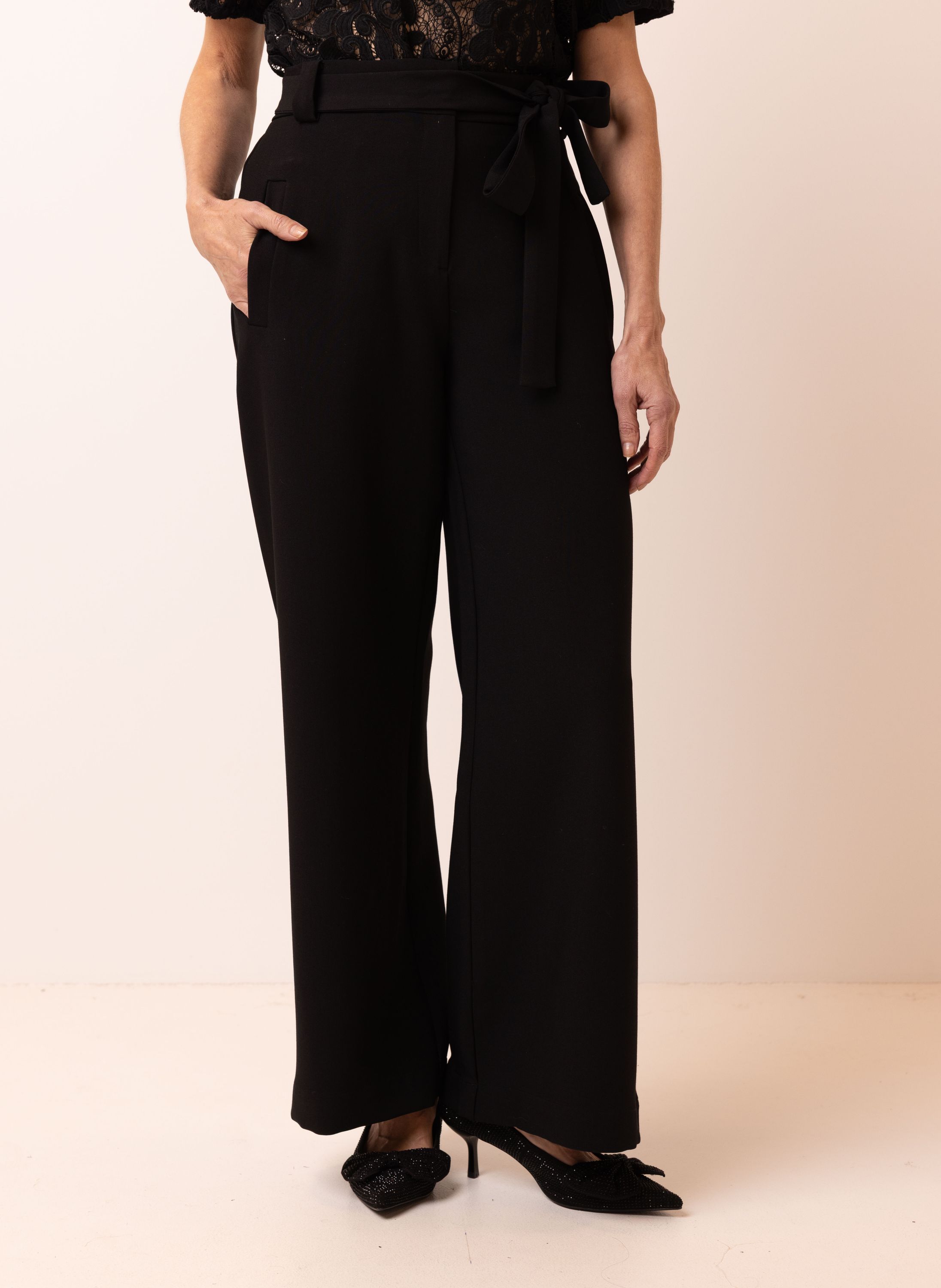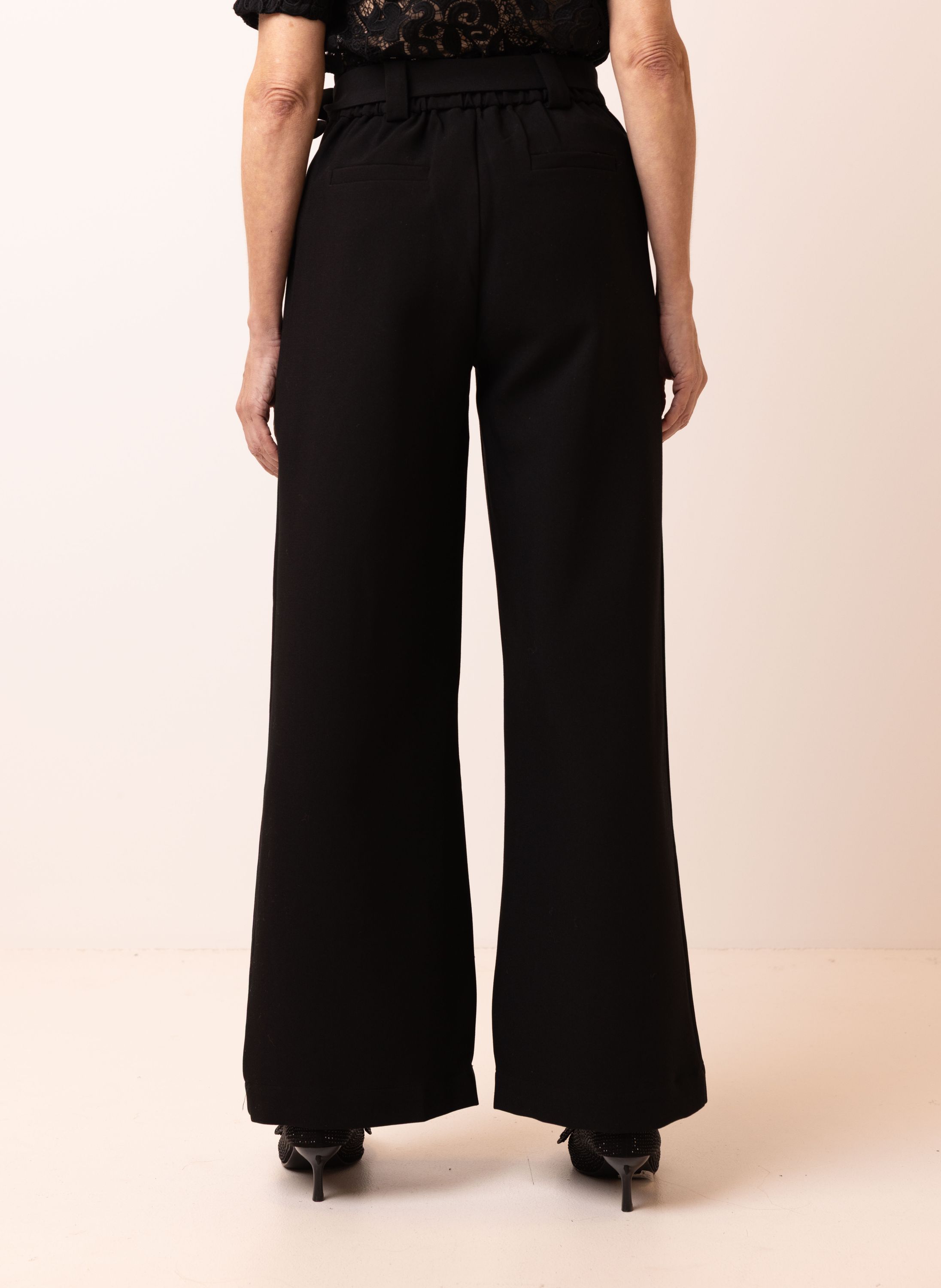 Deze high waist wide fit broek met rits- en knoopsluiting, elastische tailleband, steekzakken en ceintuur is stijlvol en comfortabel.
