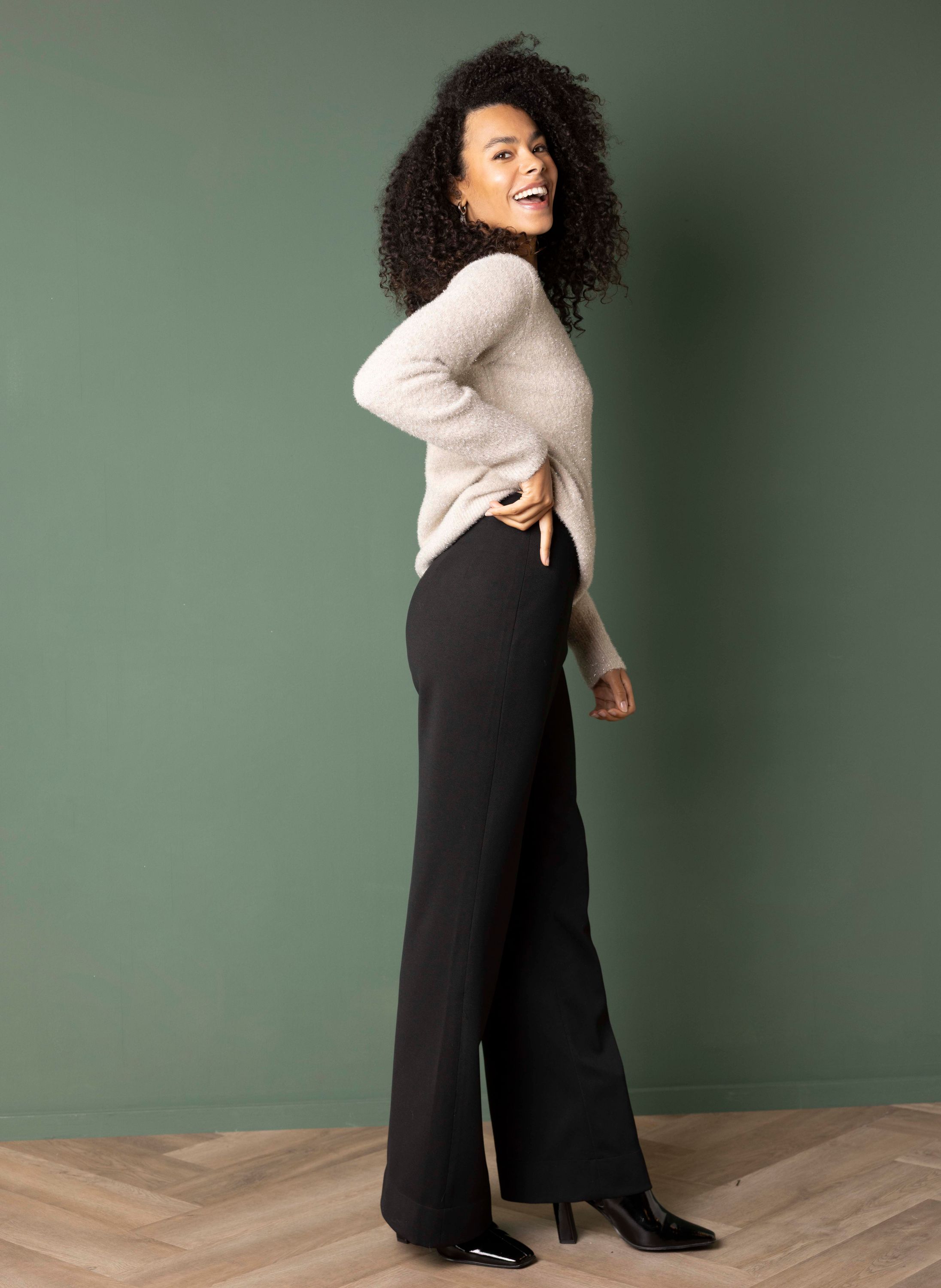 Deze high waist wide fit broek met ritssluiting aan de achterzijde heeft een elegante uitstraling.